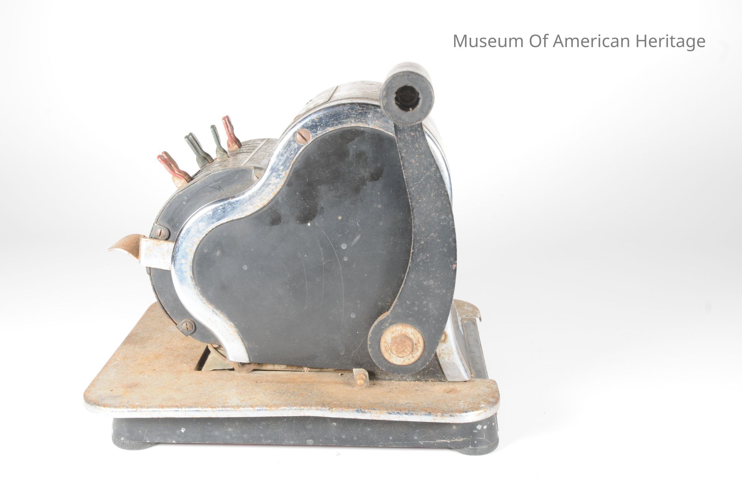 5 dollar columns, 2 cents columns pull down levers to set the dollar amount large lever prints the amount on the check