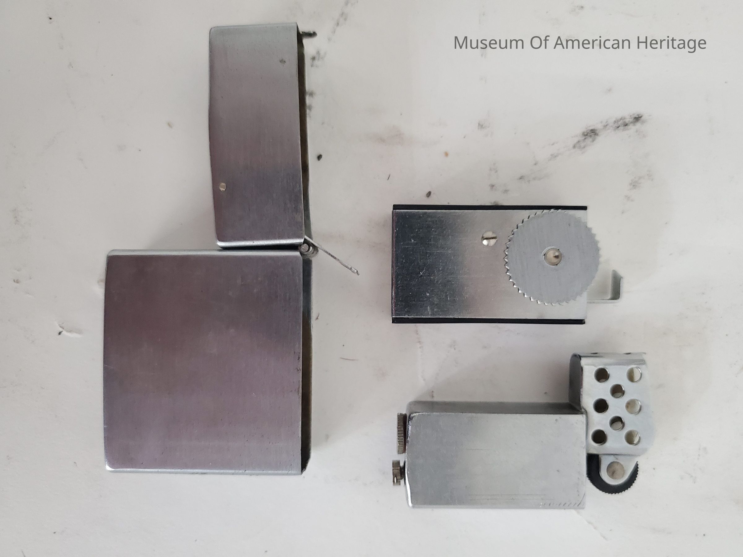 The cigarette lighter can be lifted out of the body of the product to add fluid or the flint. Once removed, the camera section can be removed to access the film.