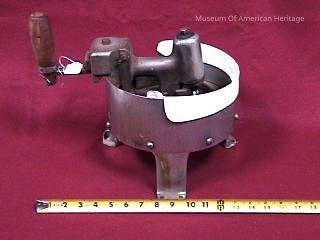 Electric, drum, about 9 dia., 11 to top of handle, for pressing separate shirt collars.