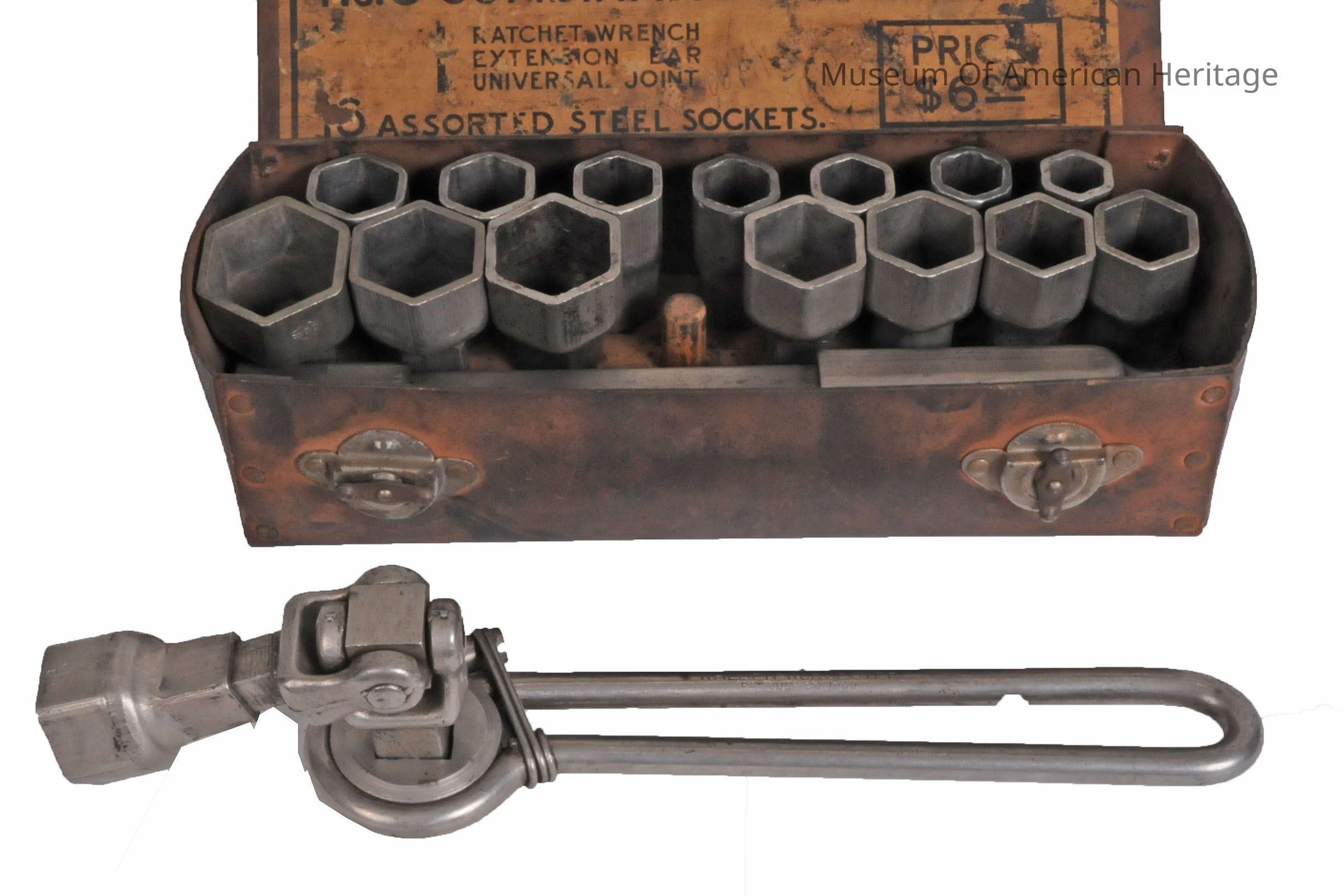 1 ratchet wrench, 1 extension bar, 1 universal joint, 16 sockets.