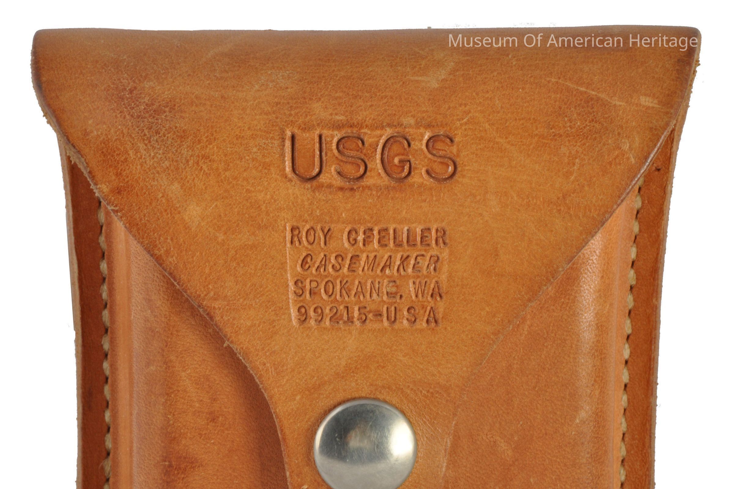 Red cord, leather case, case marked USGS, case made by Feller Casemaker, Spokane, WA.