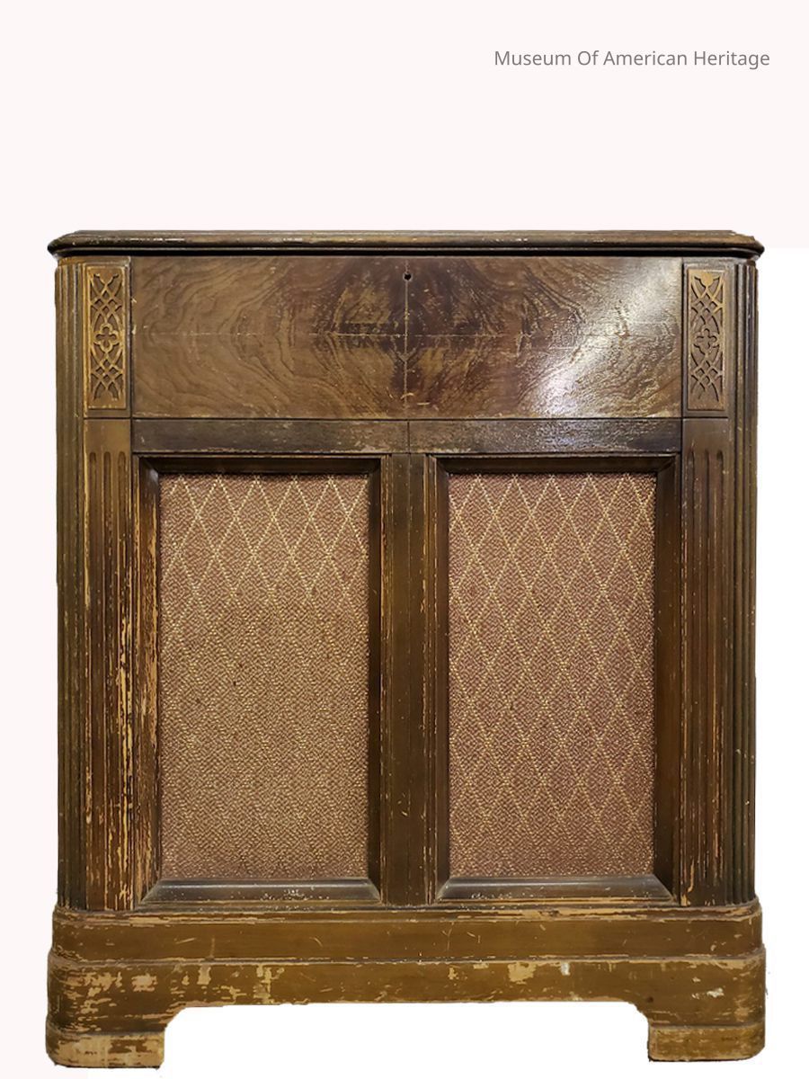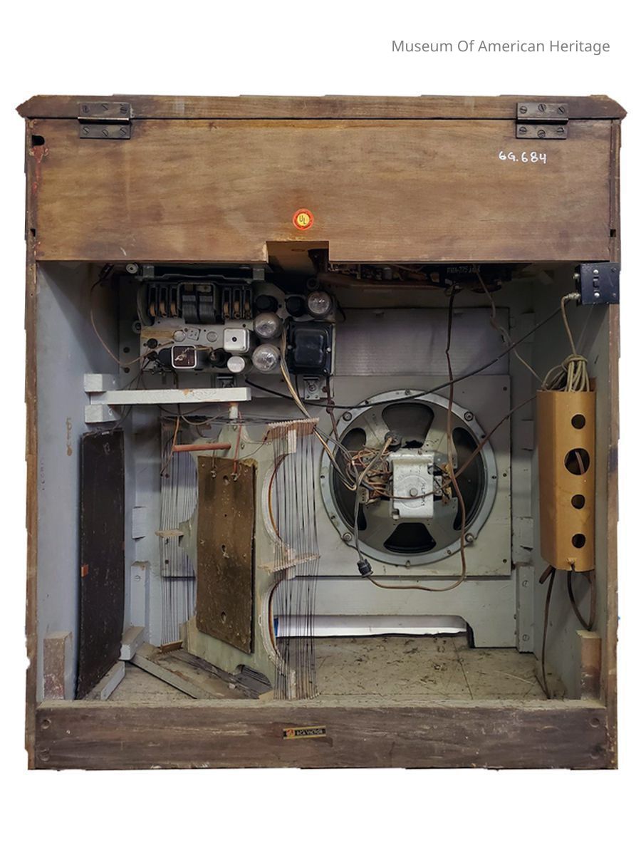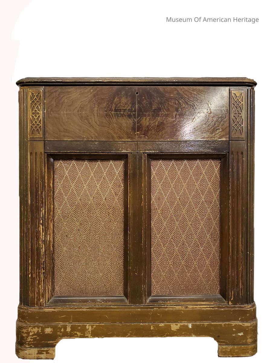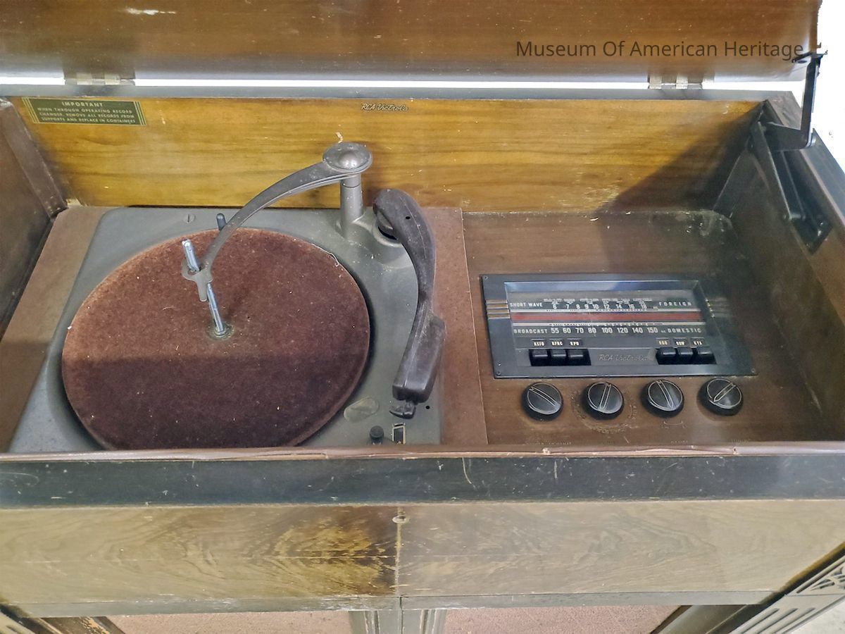Record player and radio with 6 buttons for station selection, short wave and broad band.