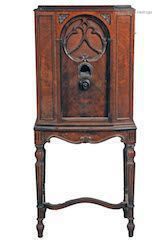 Sliding dial for volume control, on/off switch, and color (tone). AM radio. Electrical phonograph pick up.