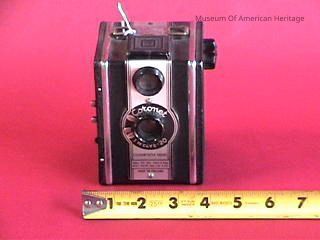 Color filter model, pseudo Twin lens reflex, timer, metal case, square format.