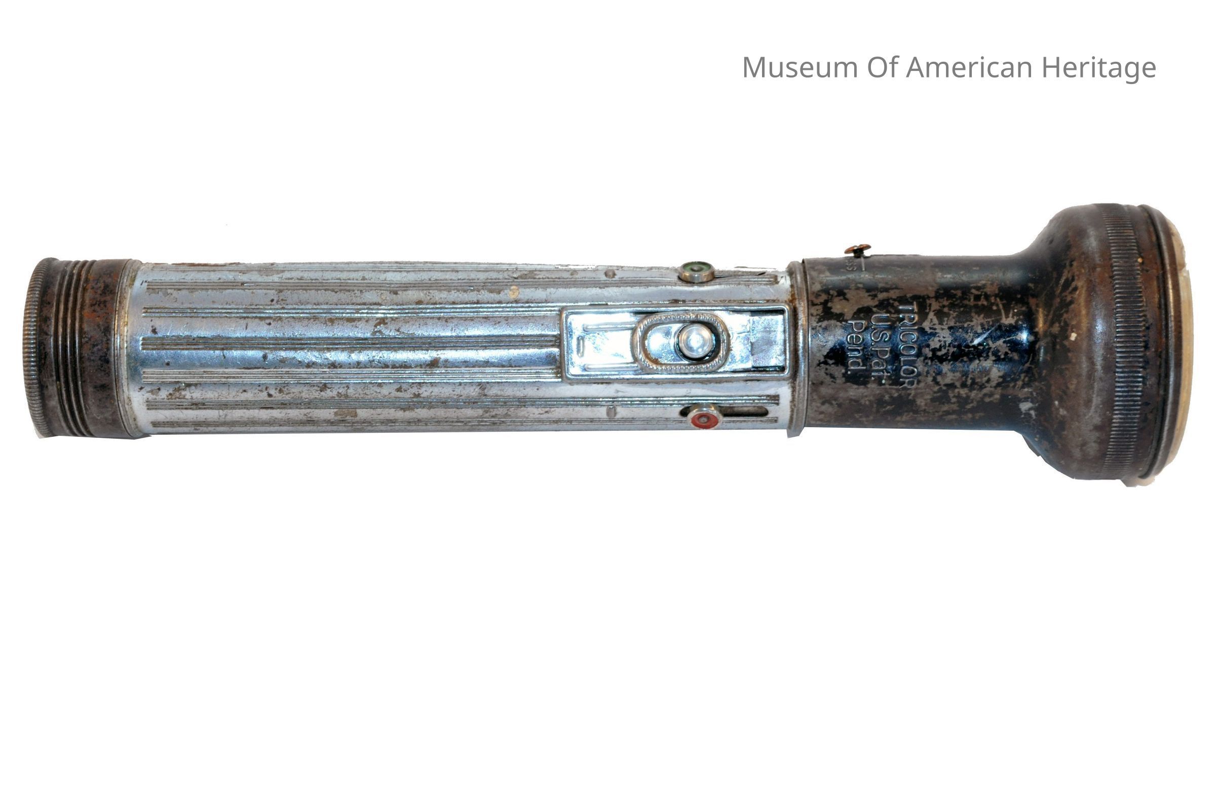 Tricolor, selectable red, green & white. Uses 3 D cells.