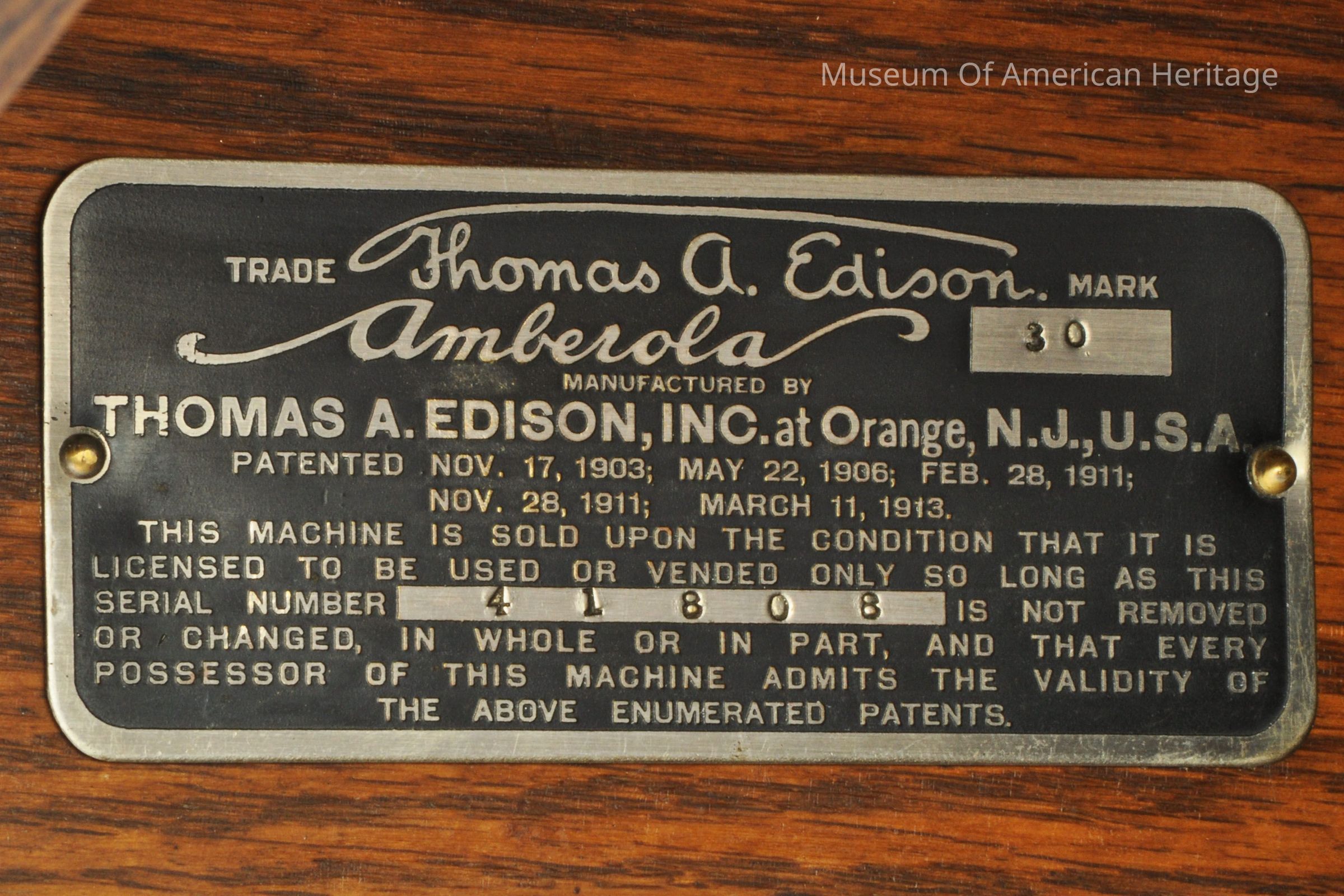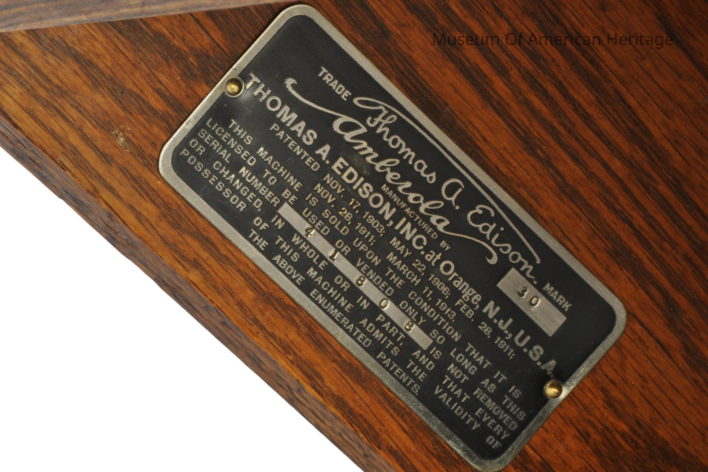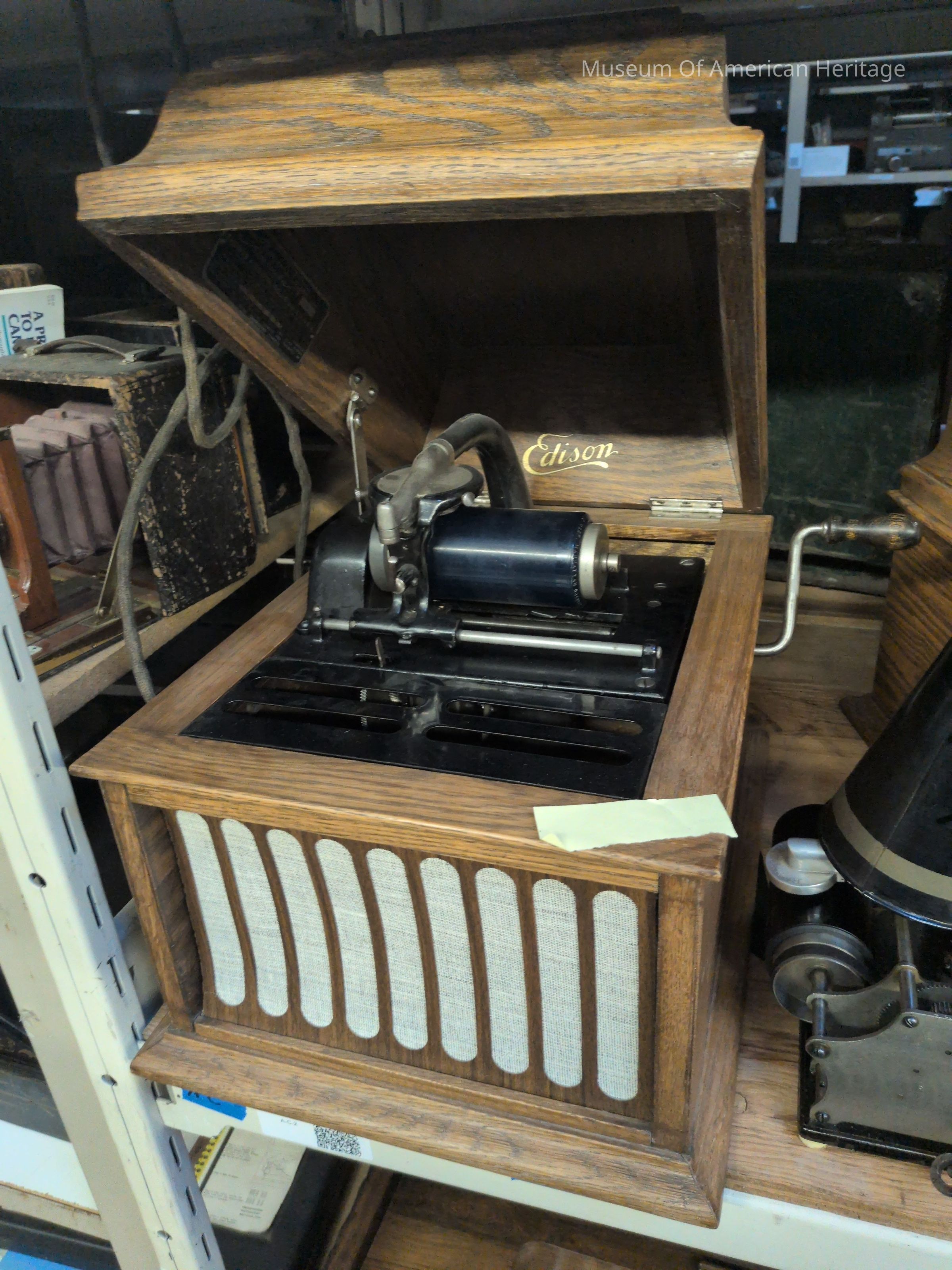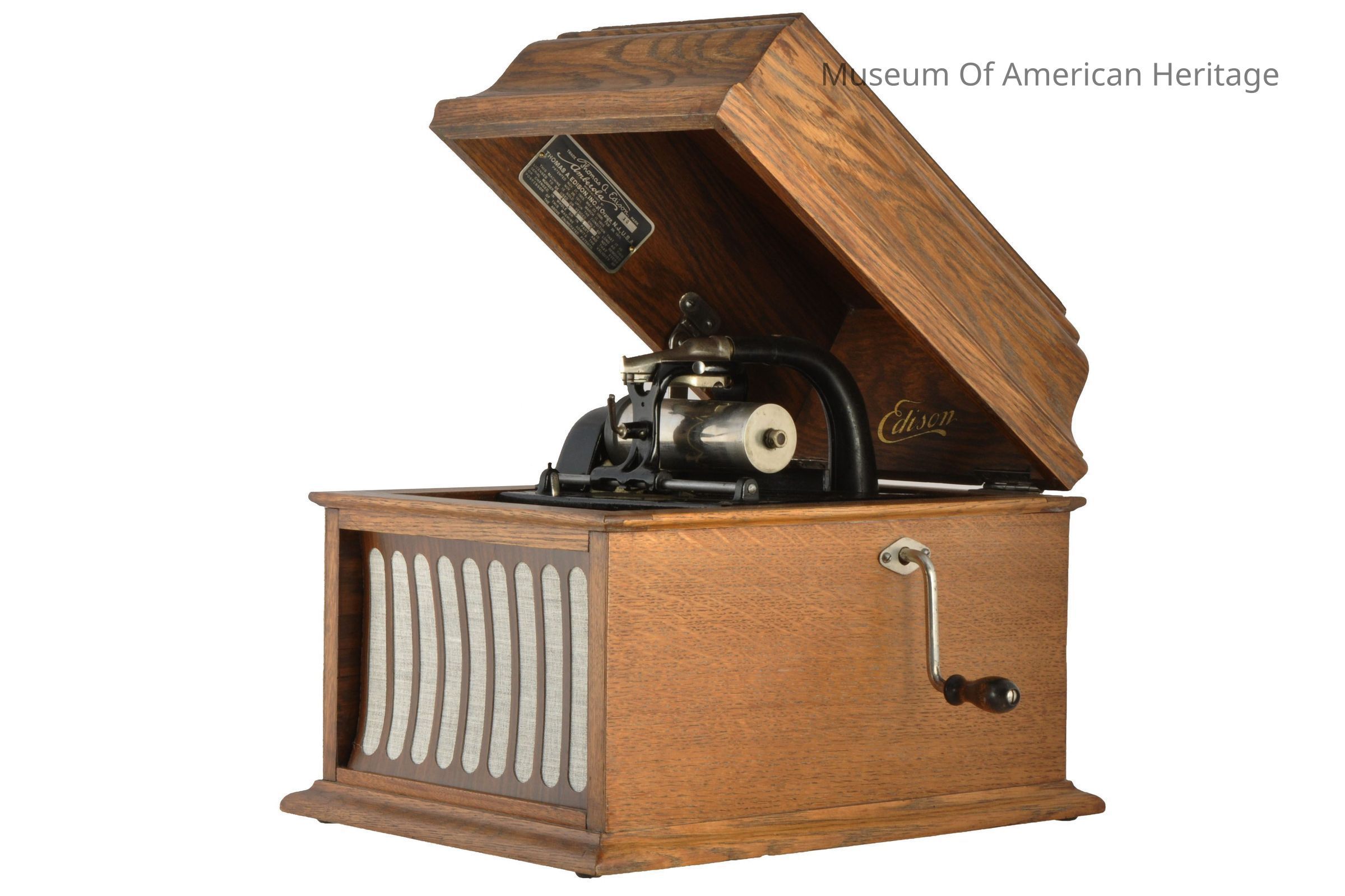 Table model, speaker moves with needle, wind-up crank, 6 music cylinders.