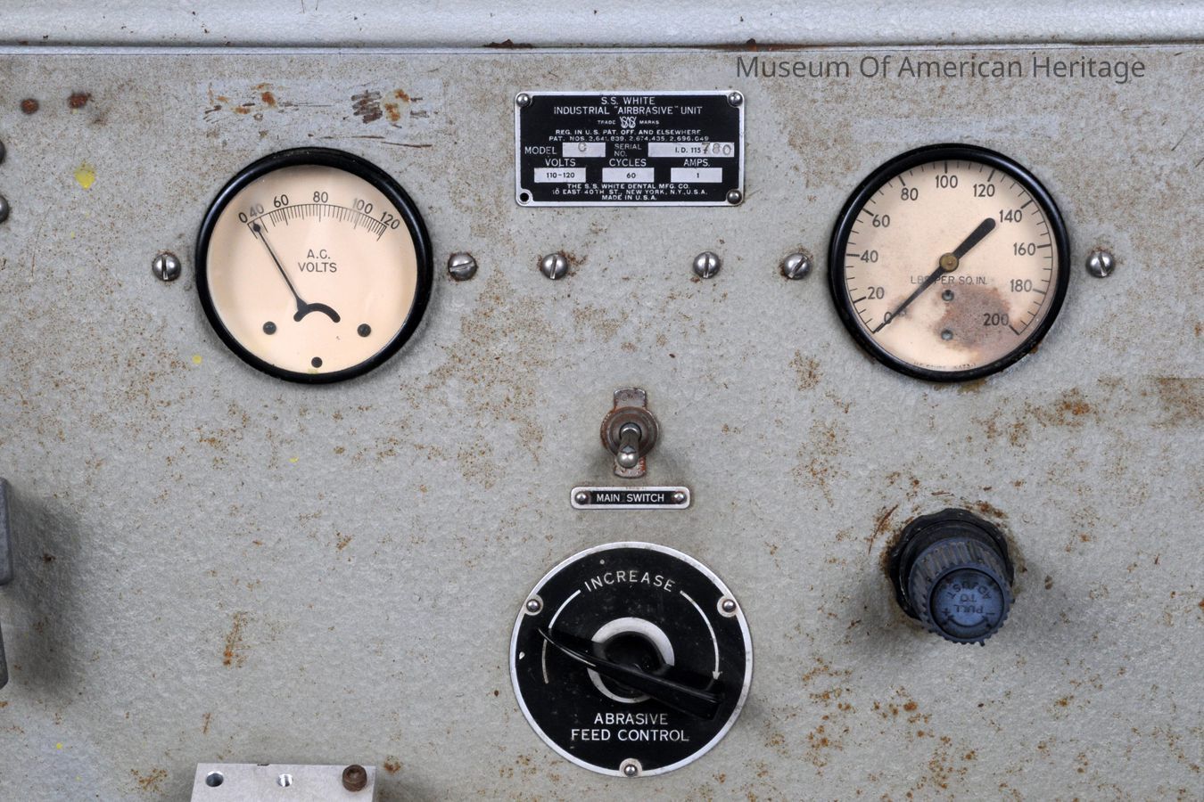 possible date made: 1940s where made: New York, NY model name: S.S. White Industrial Airbrasive Unit model number: C serial number: I.D. 115-780