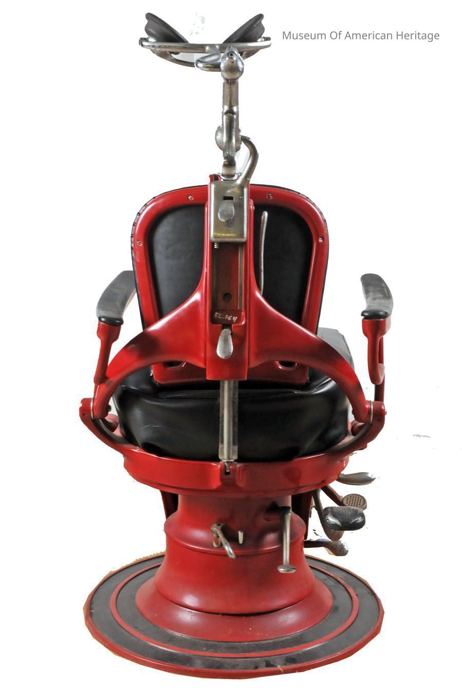 Pneumatic raise and lower. Head rest. Adjustable arm rails. No manufacturer markings.