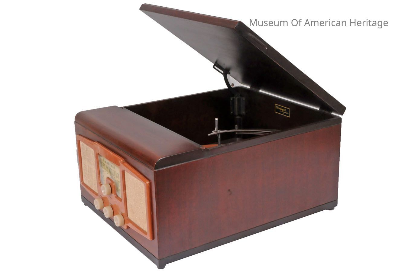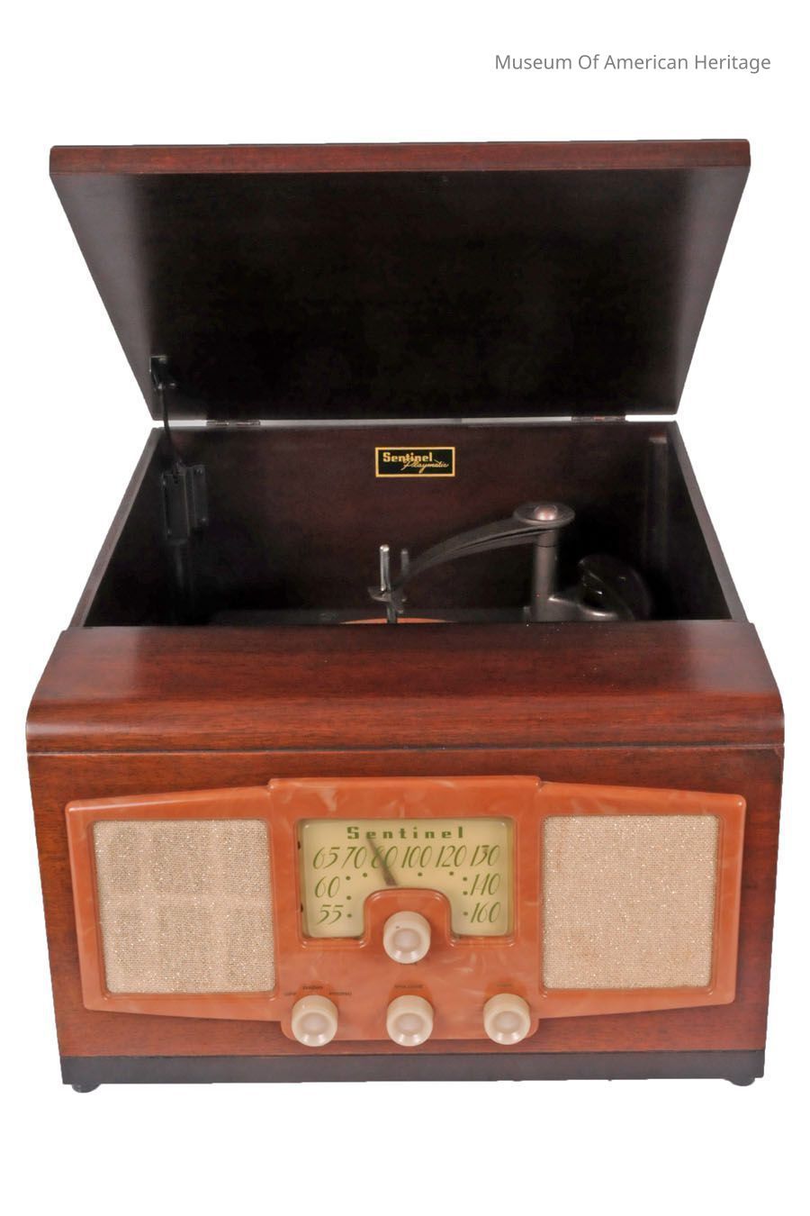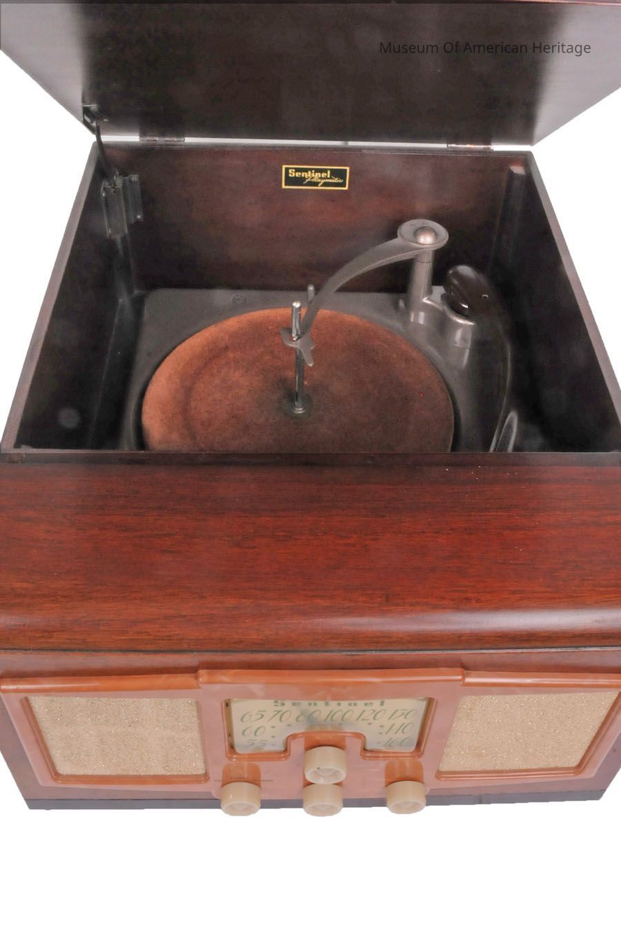 Phonograph under the top lid (33, 45, and 78 rpm).