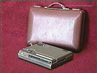 Disc recorder, with maroon carrying case.