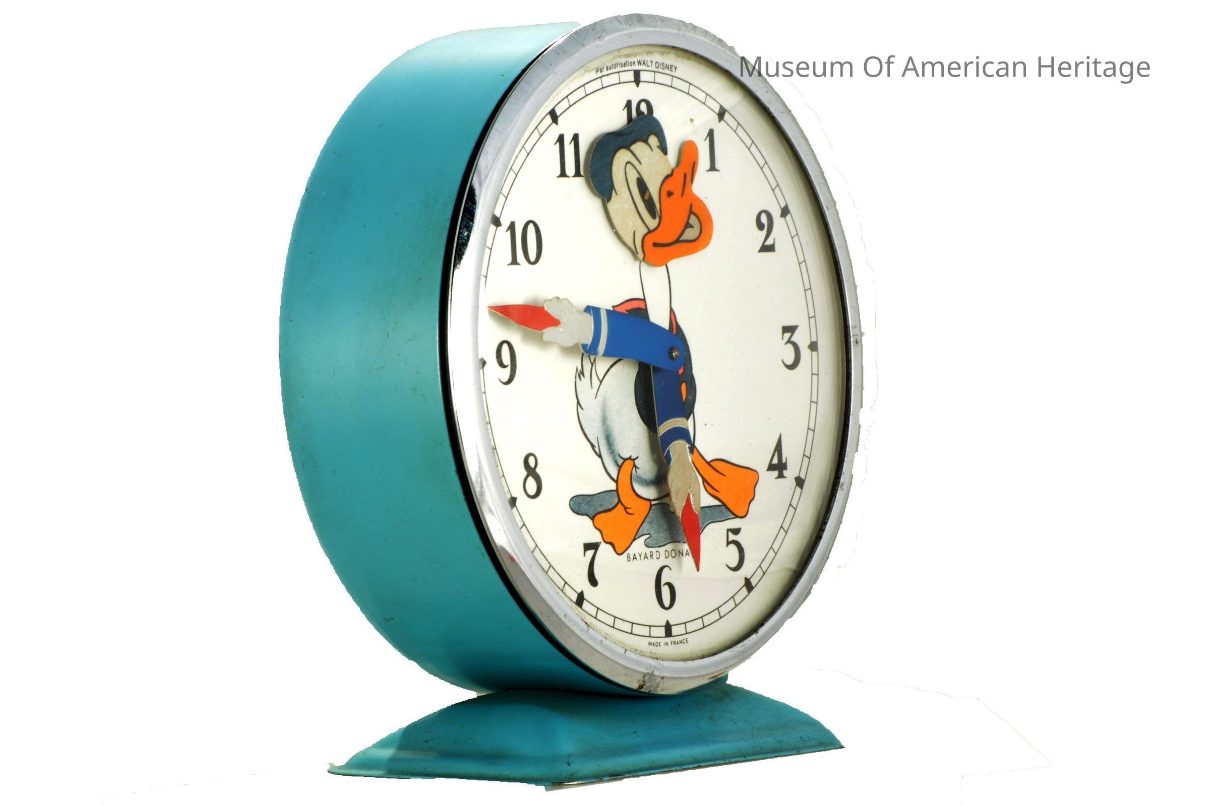 "Par autorisation Walt Disney", Donald Duck figure on face, duck hands point to time, Bayard Donald. Donald's head rock back and forth with the seconds ticking off.