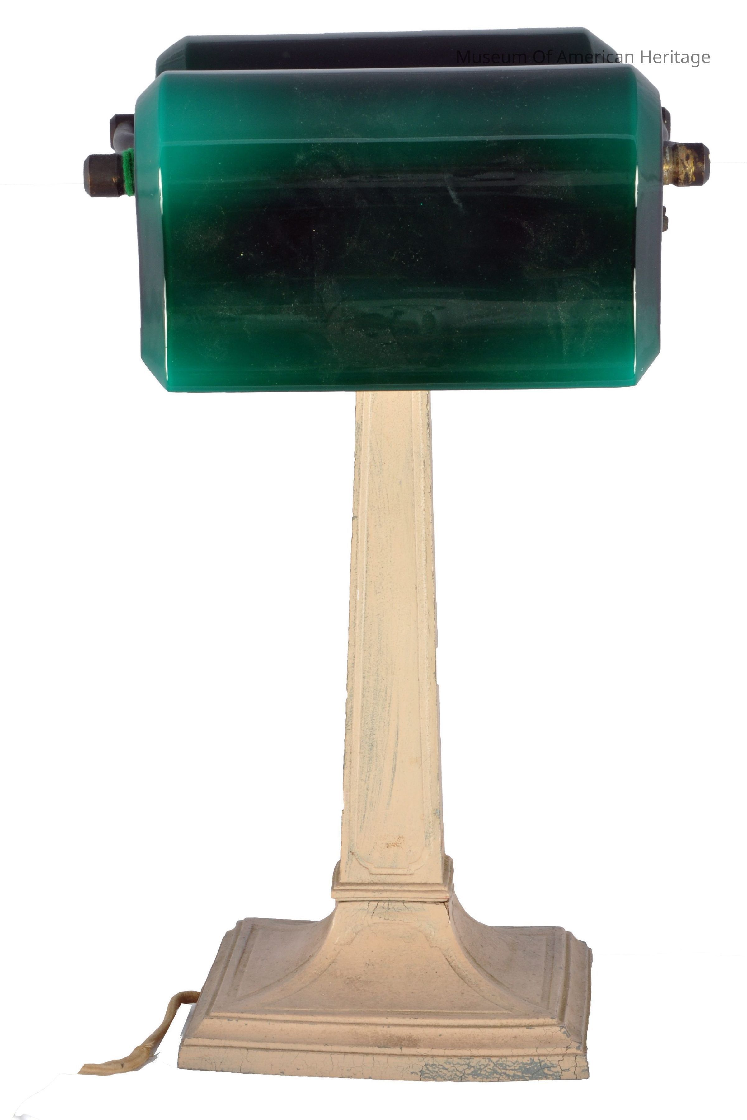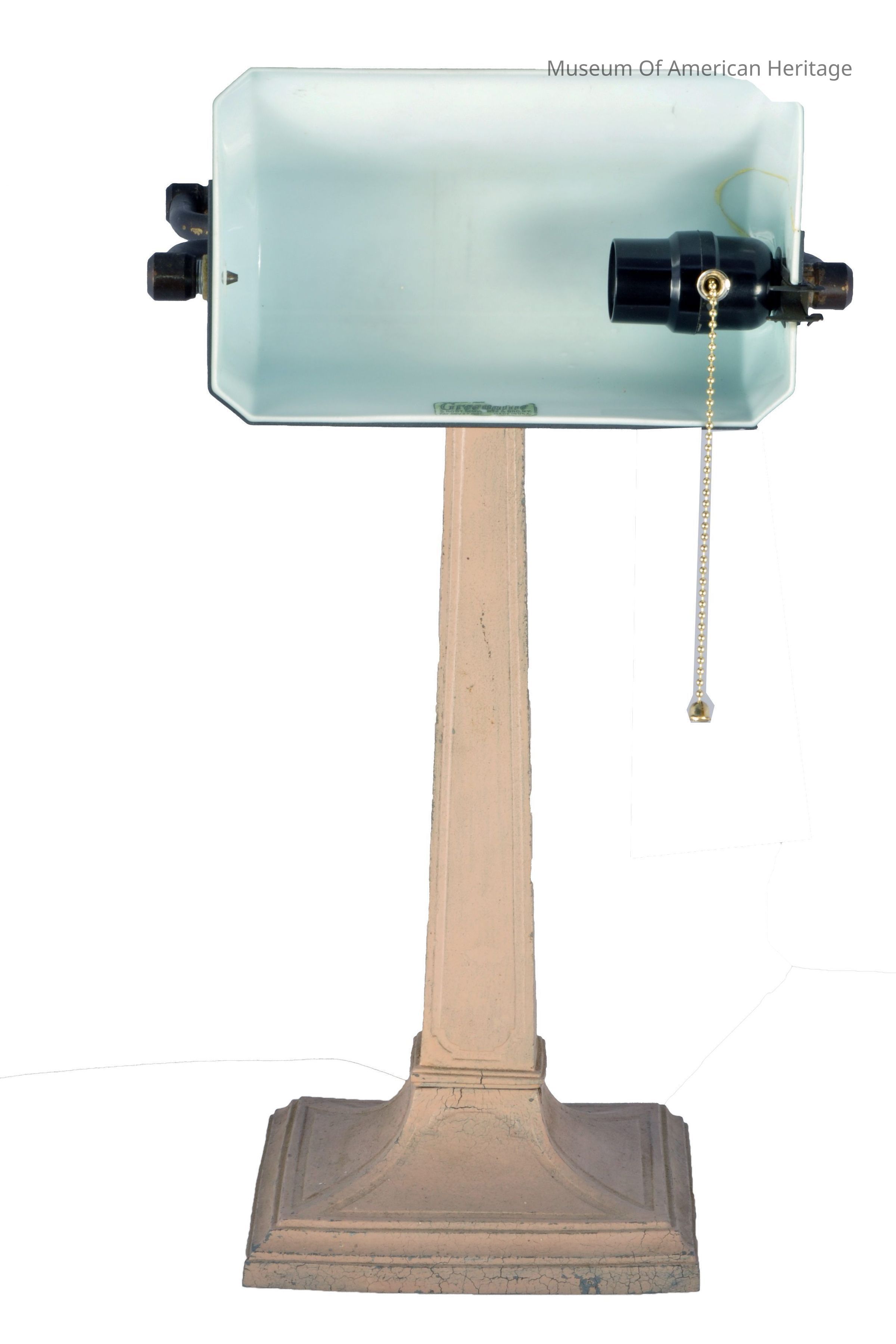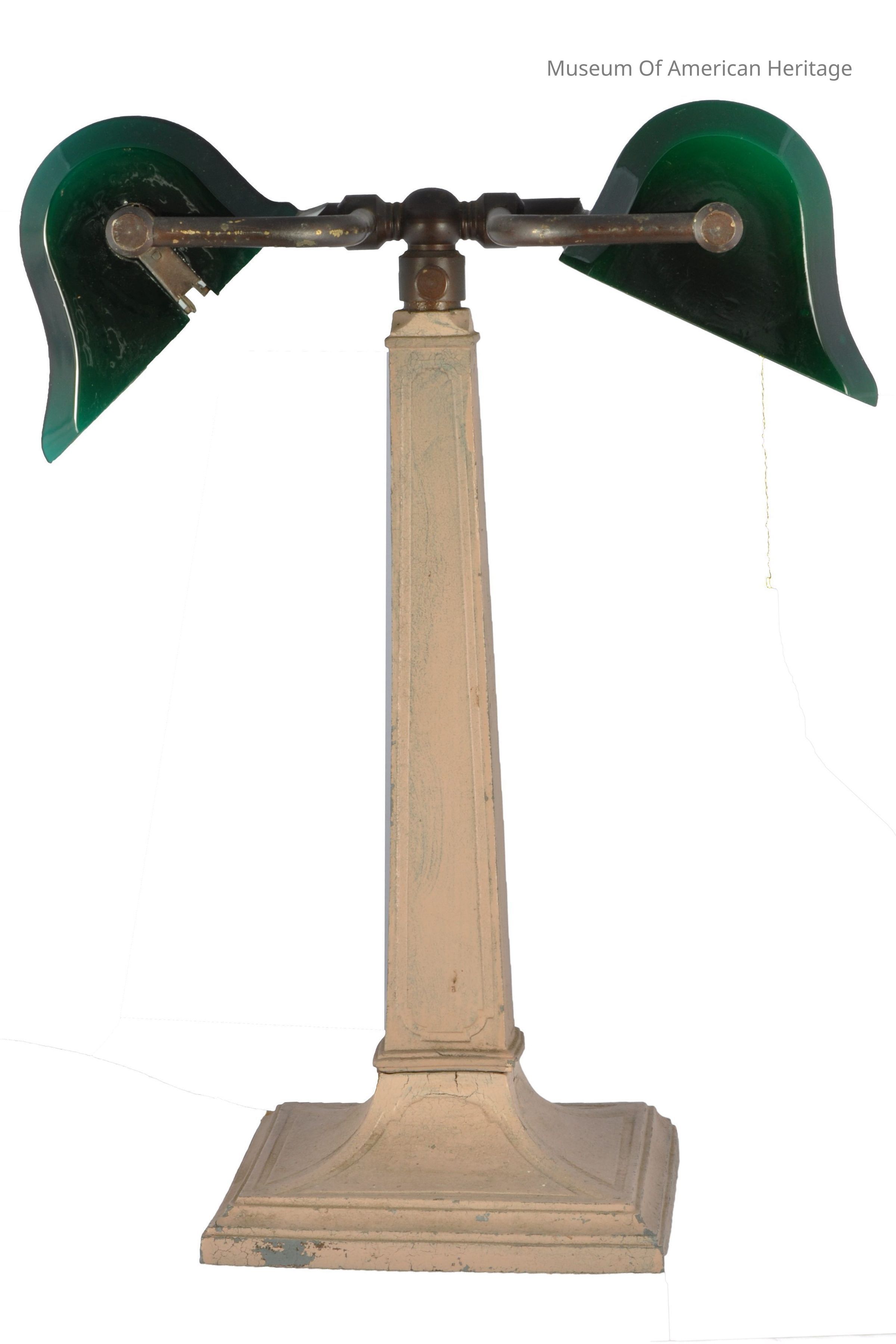 Cast pot metal, double glass lamp shades (green outer, white interior),