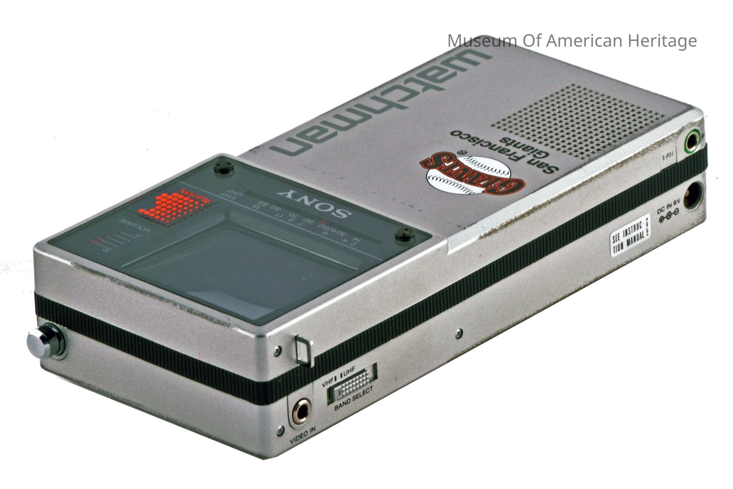 Hand held, flat black & white screen 1 1/4 x 1 1/2 , SF Giants logo on front, magnifier included, leatherette carrier with screen shield, silver.