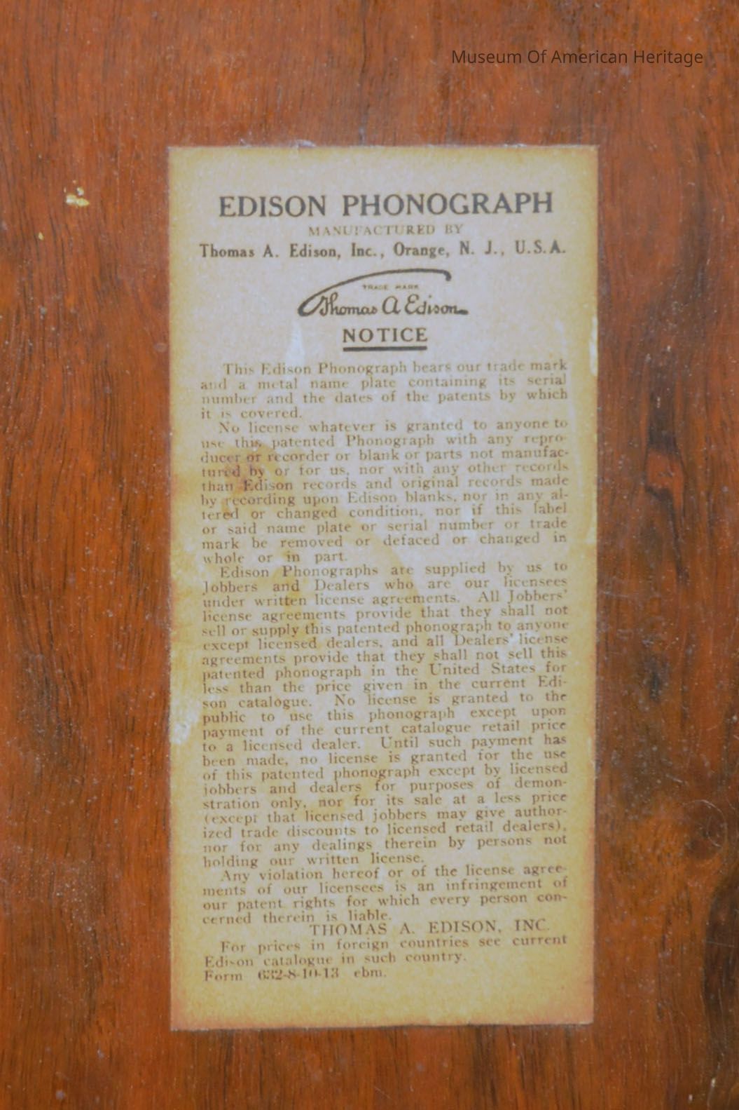 where made: Orange, NJ model name: Diamond Disc model number: A-425 serial number: SM 2771