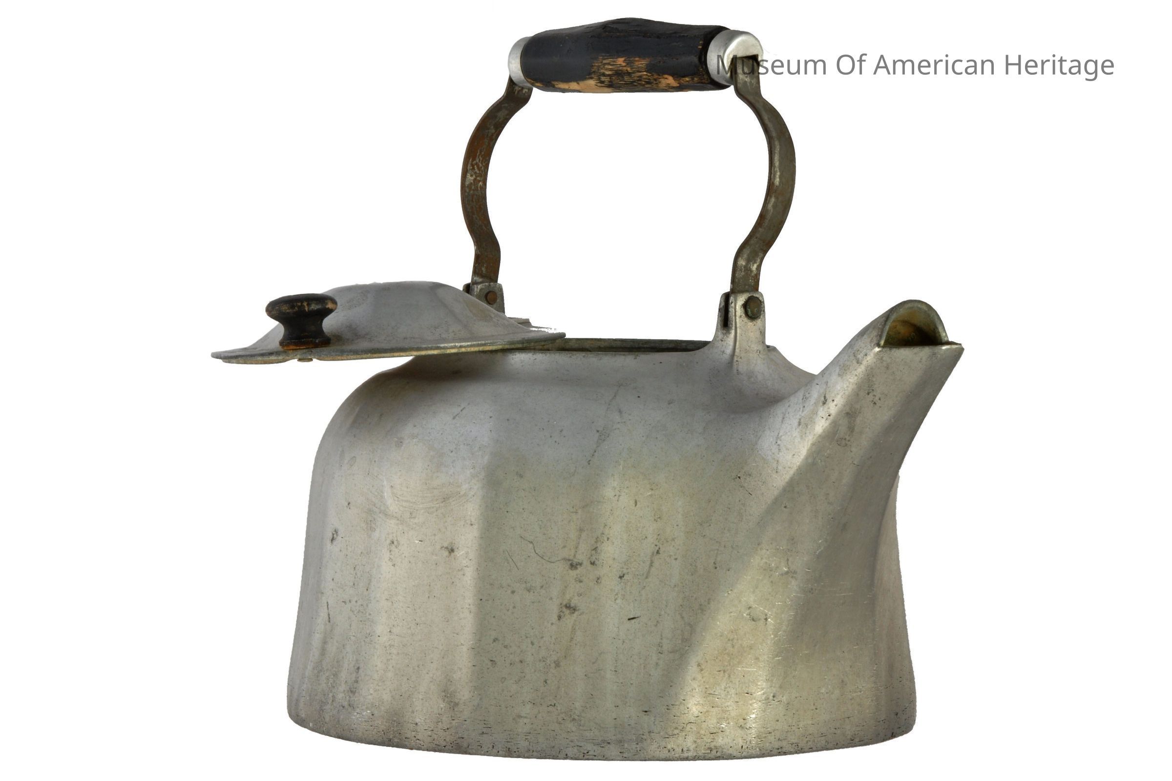 5 quart, cast aluminum, lid pivots to side, black wood handle.