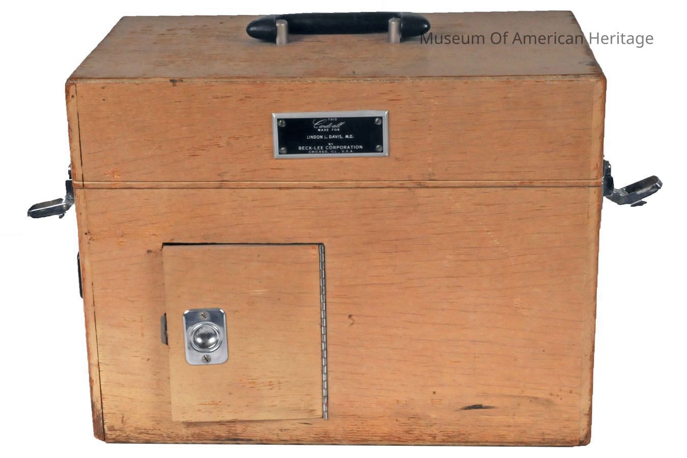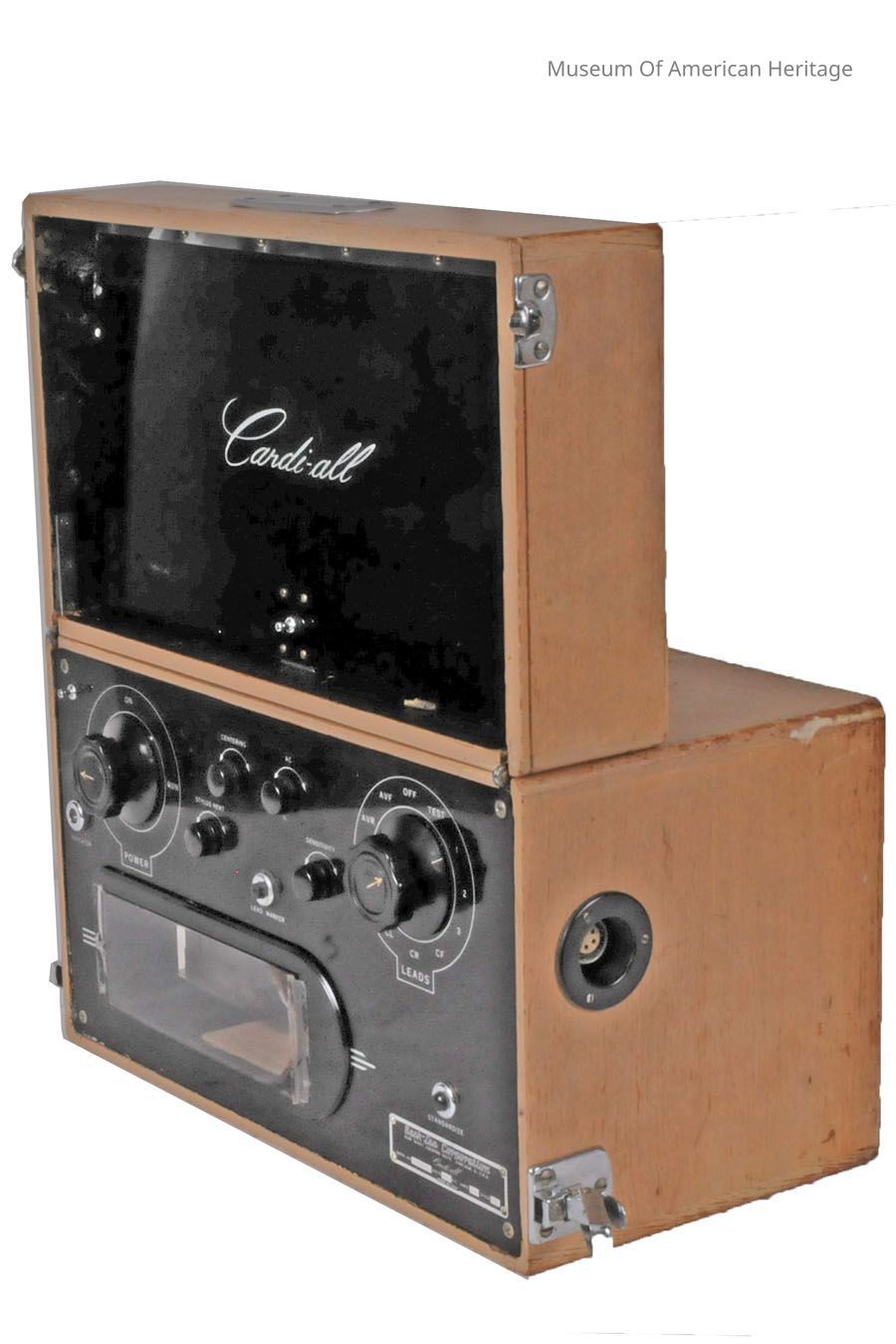 MOAH’s Cardi-all dates from the 1940s and is missing its power cord, sensors, and some wiring. It was made by the Beck-Lee Corporation of Chicago, which still exists. The Cardi-all’s cost is unknown, but a 1959 ad from the company shows it for sale at $665 and touts as features its portability, quick paper loading, and simple operation that can be taught in less than an hour.