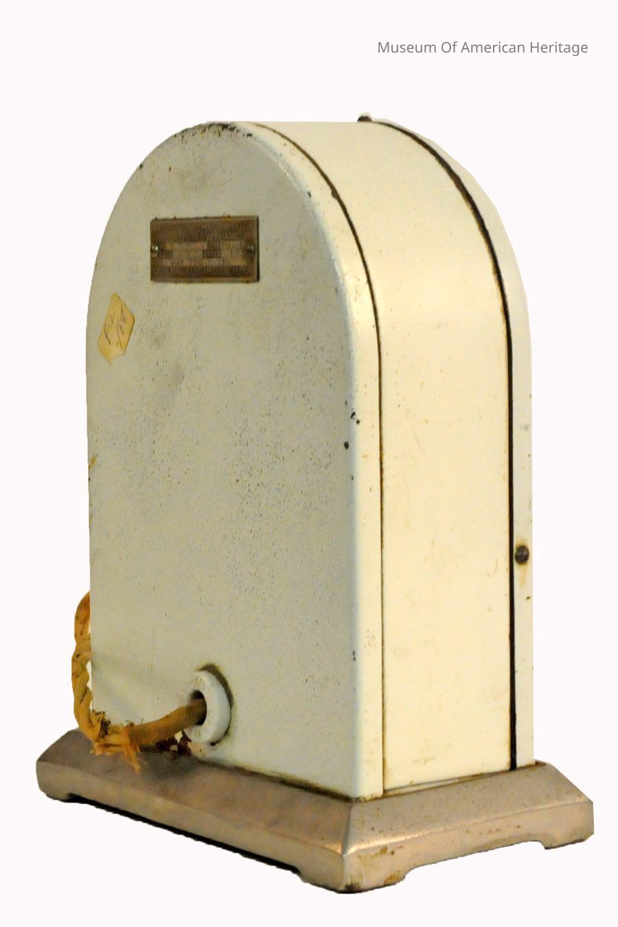Metal case, electric timer. This timer is unusual because it is a 110V and 50 Hz instead of the nominal 60 Hz. The 50 Hz line frequency was used in a few areas of the United States (including Los Angeles up through 1948).