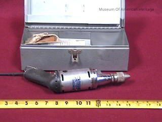 1/4 electric drill kit in metal box.