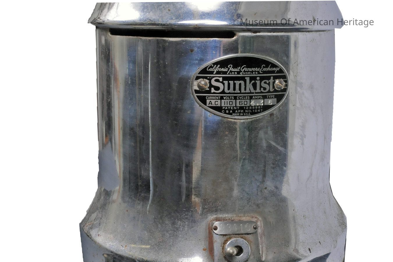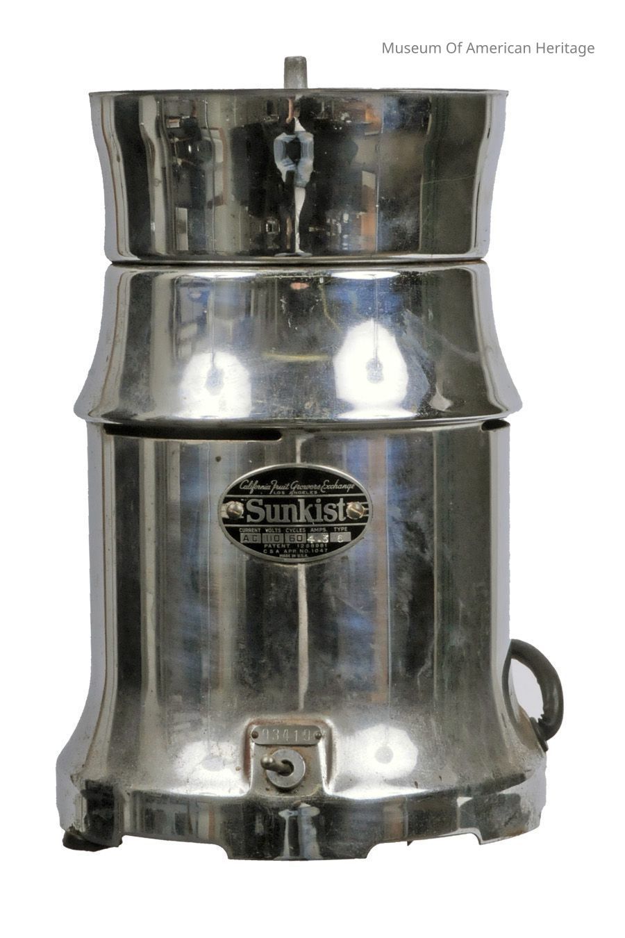 California Fruit Growers Exchange name was only around from 1905-1952, Sunkist campaign to drink more OJ, electric juicer made juicing easier to promote drinking healthier, detachable top and reamer.