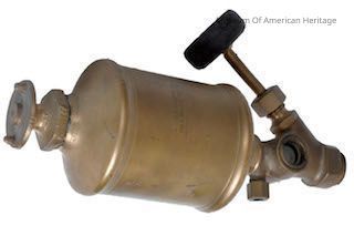 Large oiler, likely for a steam engine. Glass ports to see oil reservoir.