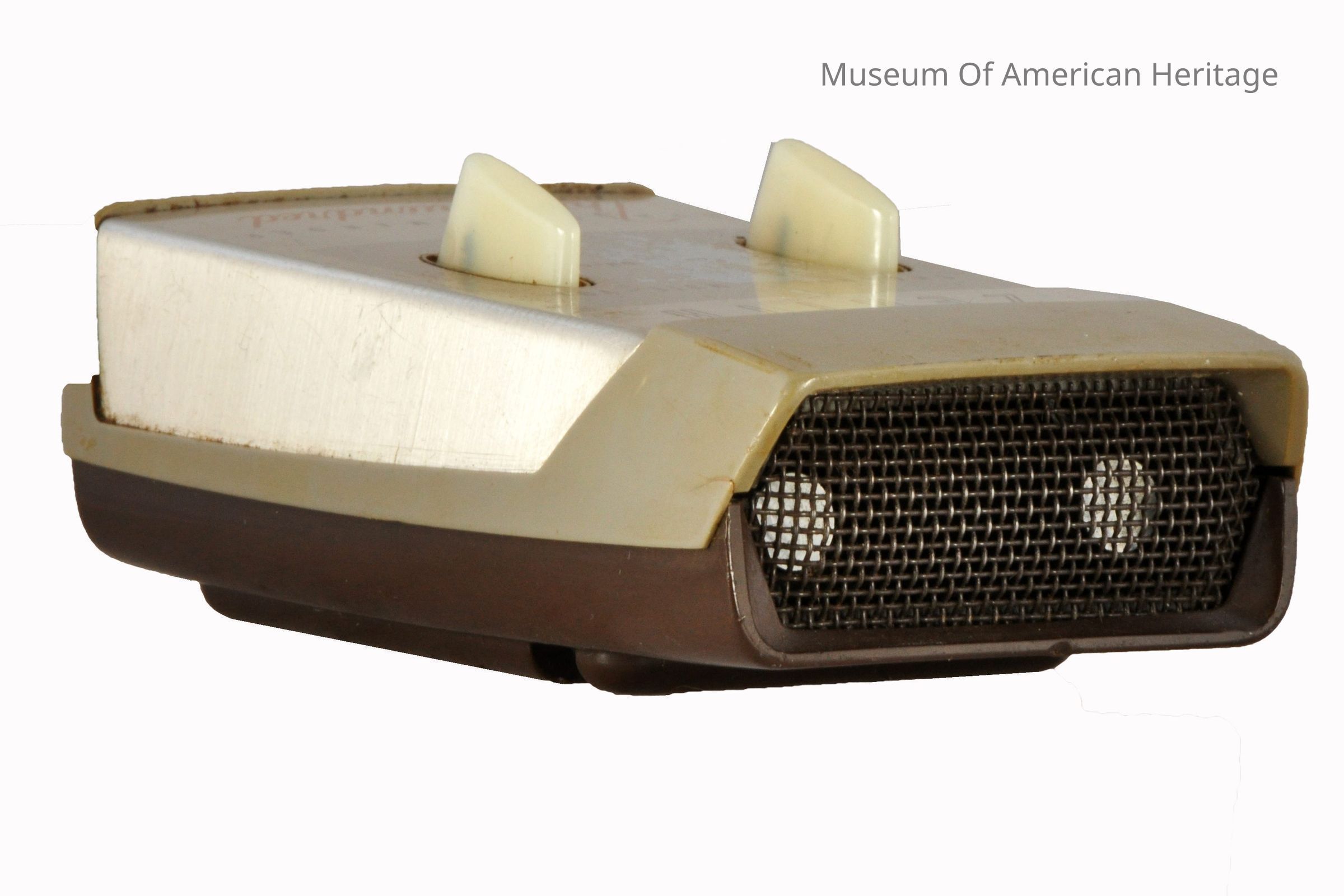 Channel change button, on/off/mute button, uses tuning forks for changing.