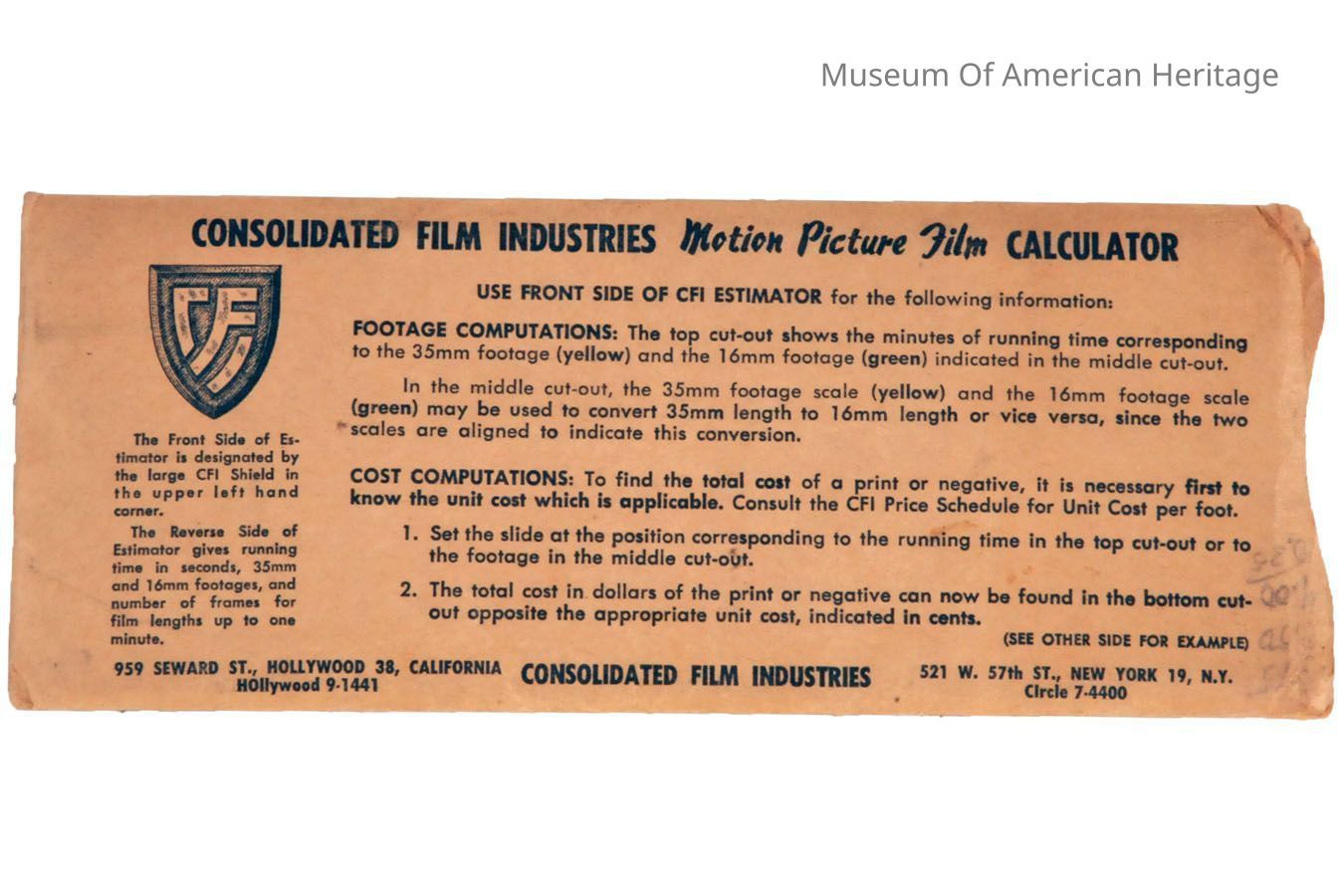 model name: Motion Picture Film CalculatorGeneral Notes