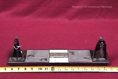 16mm film splicer, with supply spindle, takeup spindle with crank.
