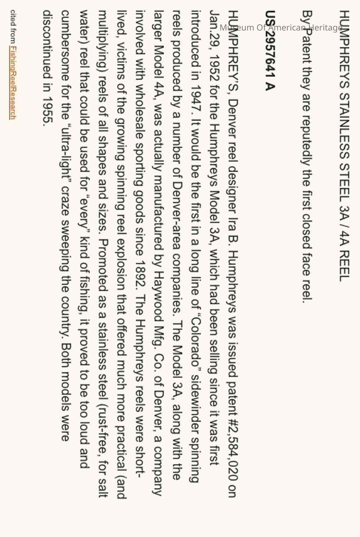 Manuf. from 1947 but Pat. Jan. 29, 1952, a side delivery reel.
