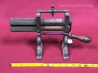 Wringer style fluting iron, fluting rolls outside of frame, 4 1/2 flutes.