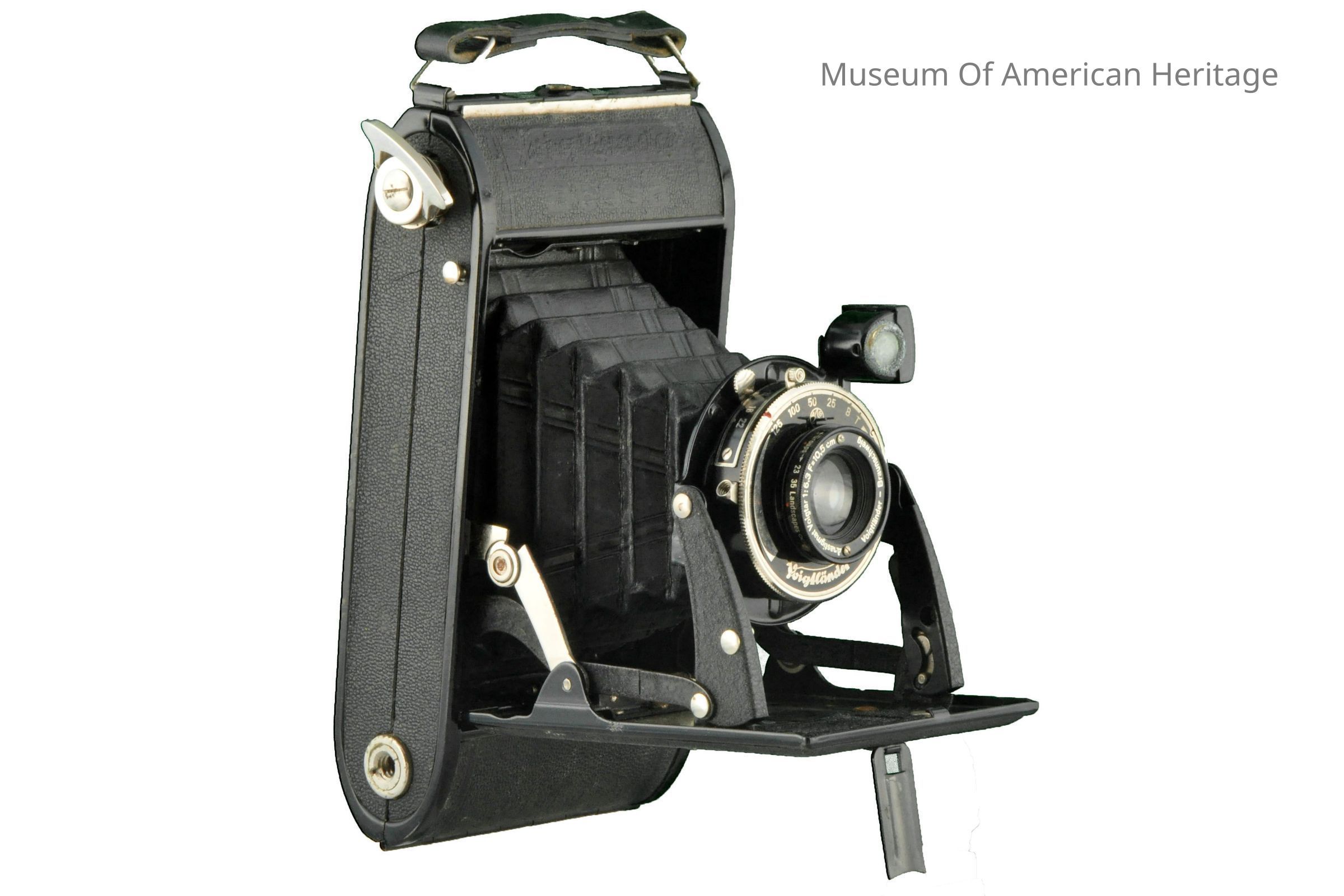 Anastigmat Voigtar Lens, 1:6,F 10.5 cm, folding stand in front.