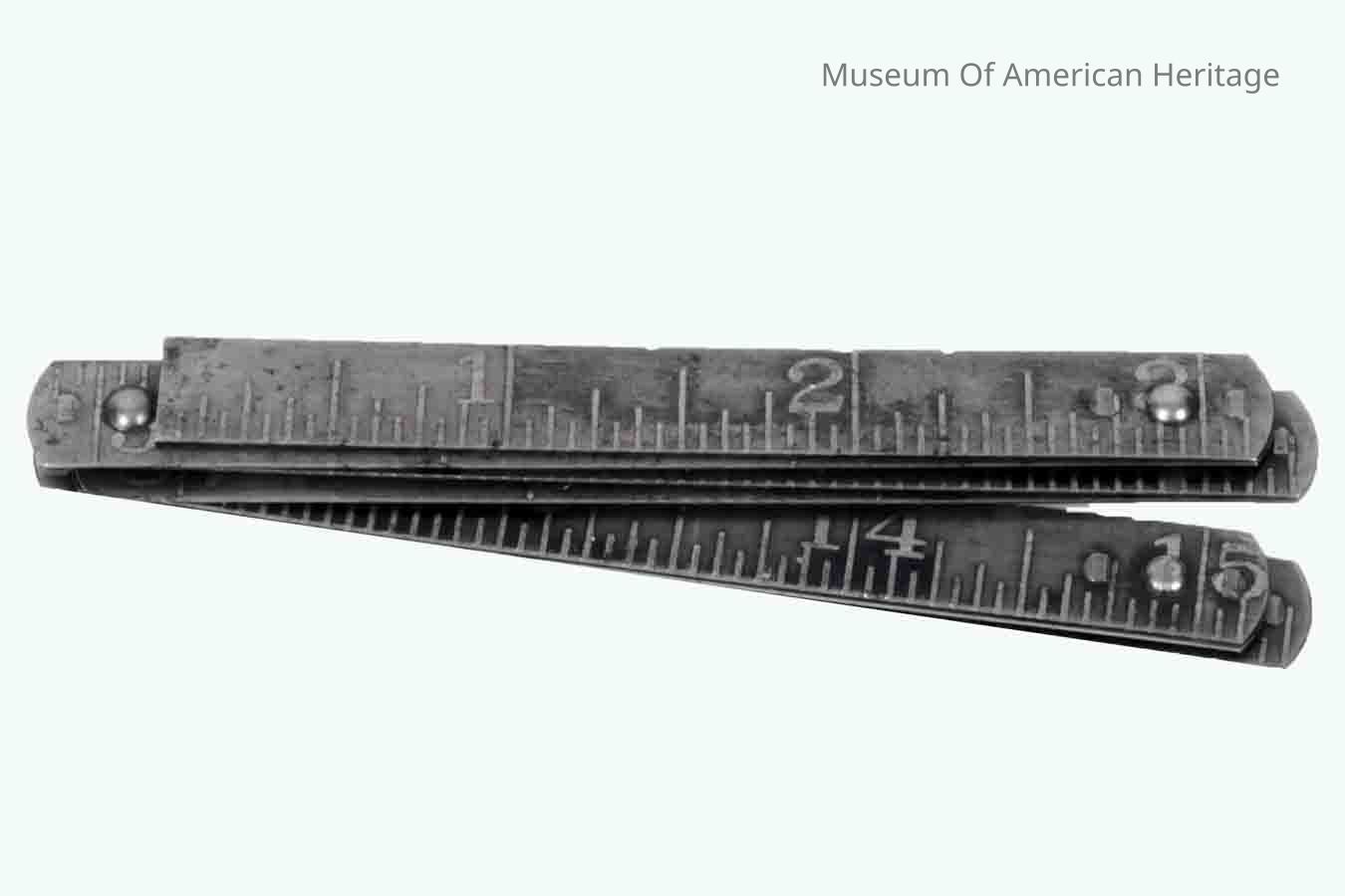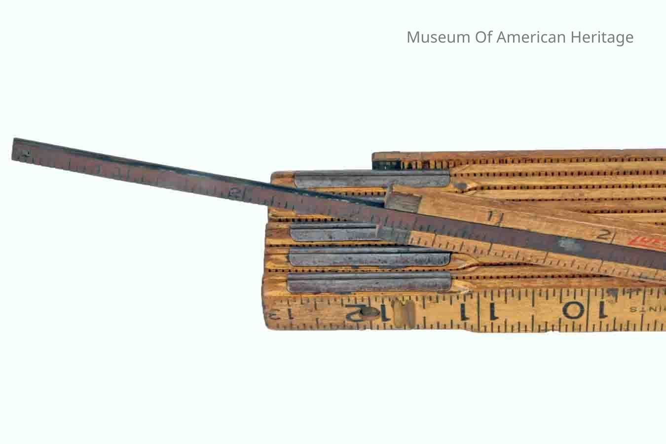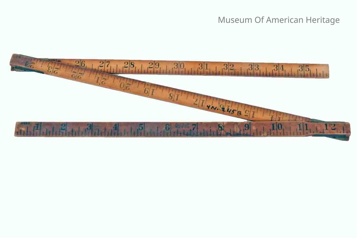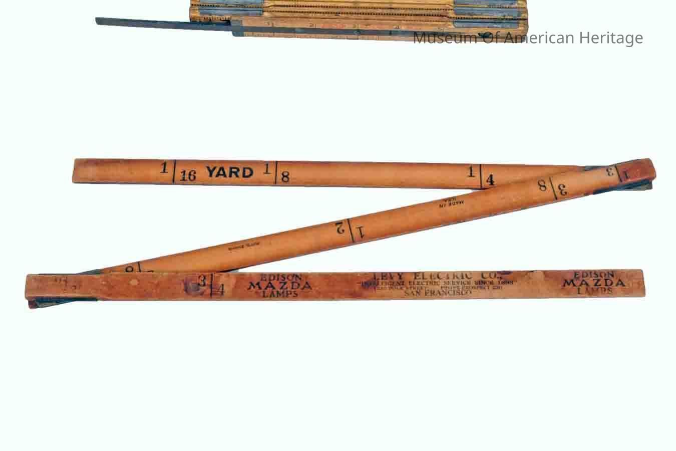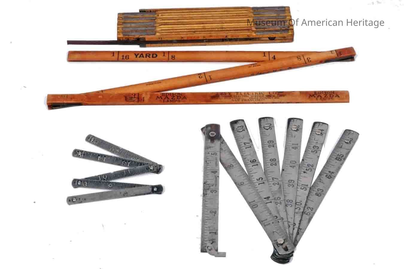 A: Lufkin, 72 with 6 metal extension B: Lufkin, markings in inches and yards C: Hecsharp, steel, 72 , magnetic fasteners D: Lufkin, 24 , steel, 8 fold