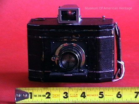 Single lens reflex, roll film only. Lens folds up after mirror is raised, all controls under top lid
