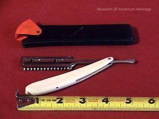 Looks like straight razor, blue & red plastic case