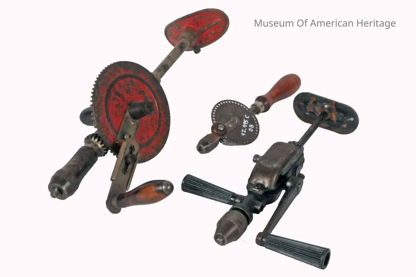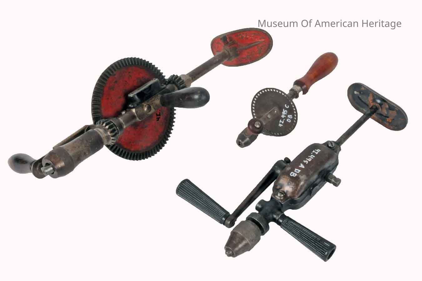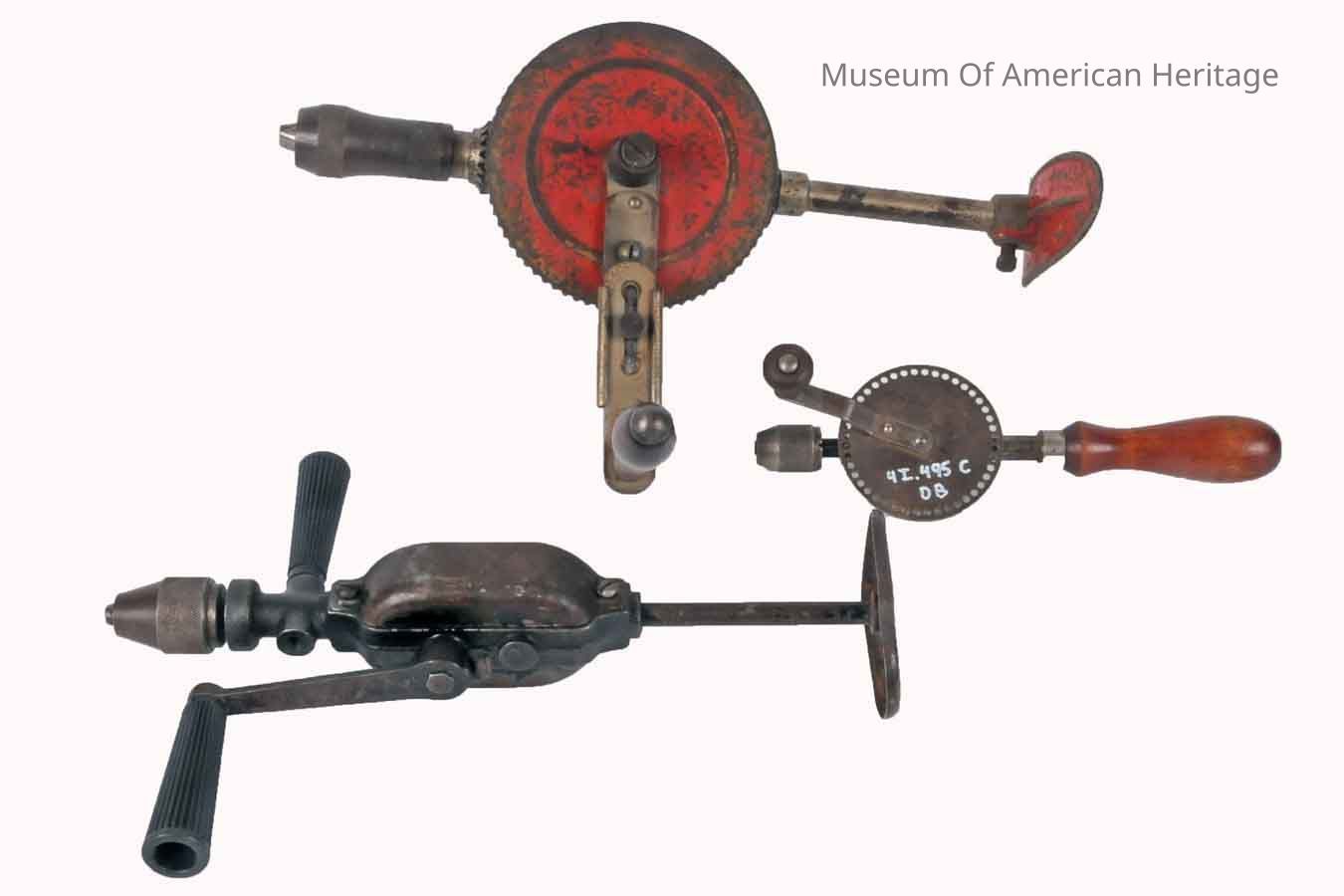 A - 2 speed, black, shoulder rest B - Millers Fall Co., with level, shoulder rest C - hand held
