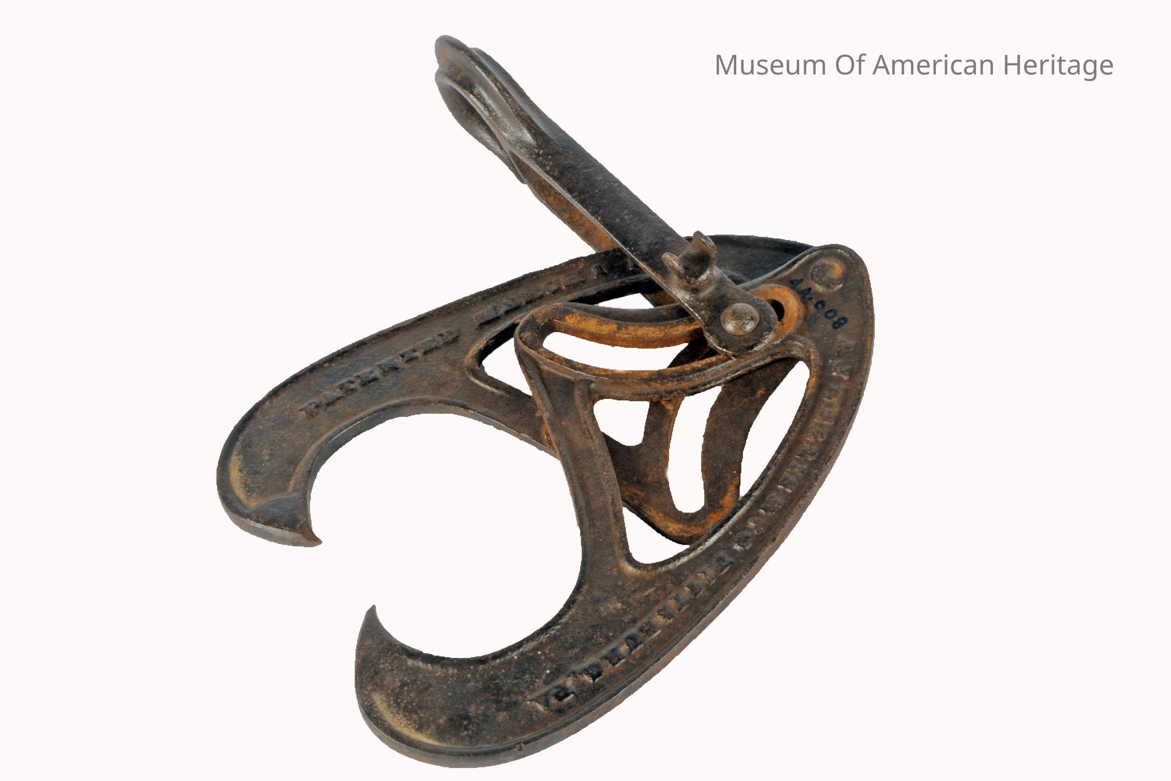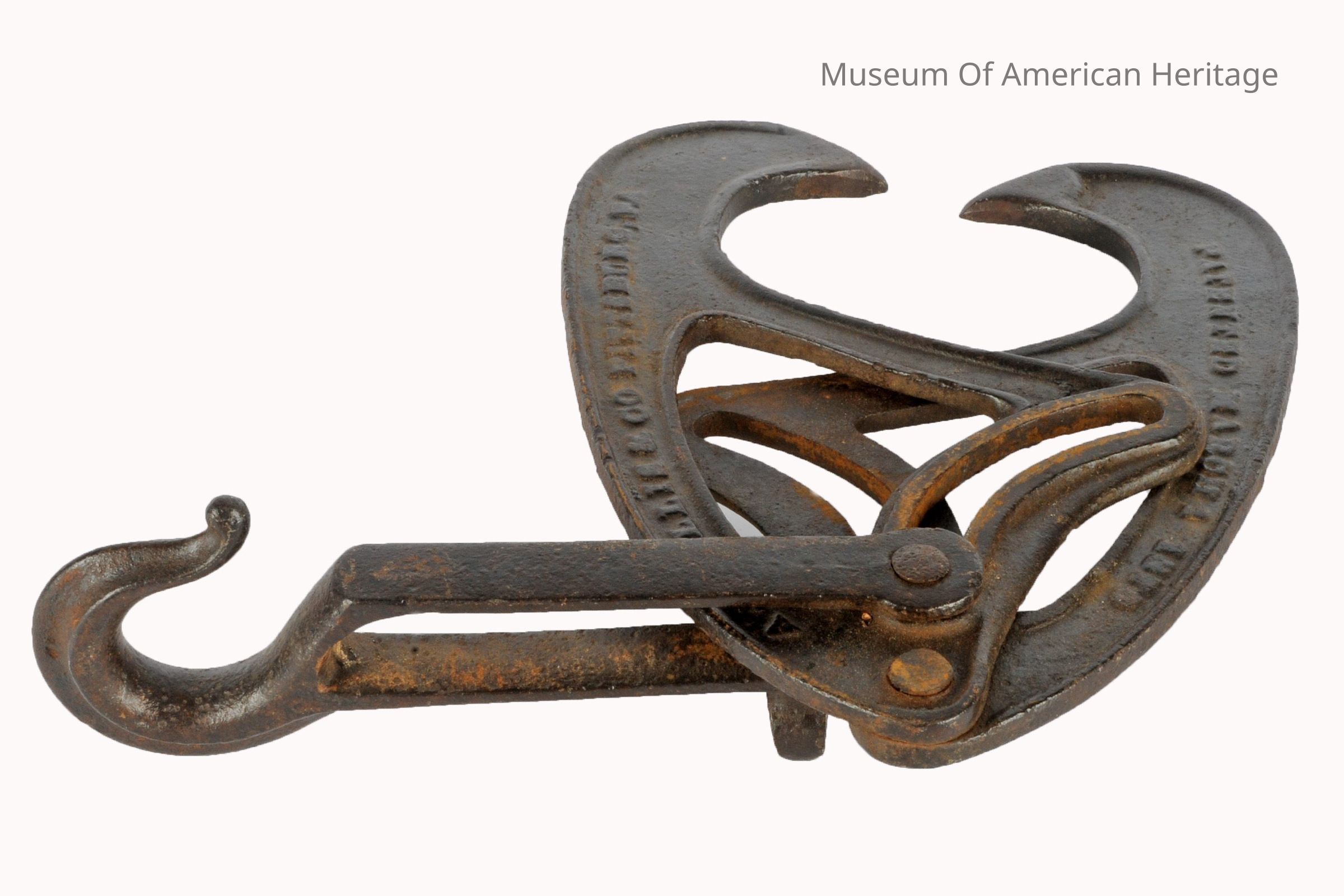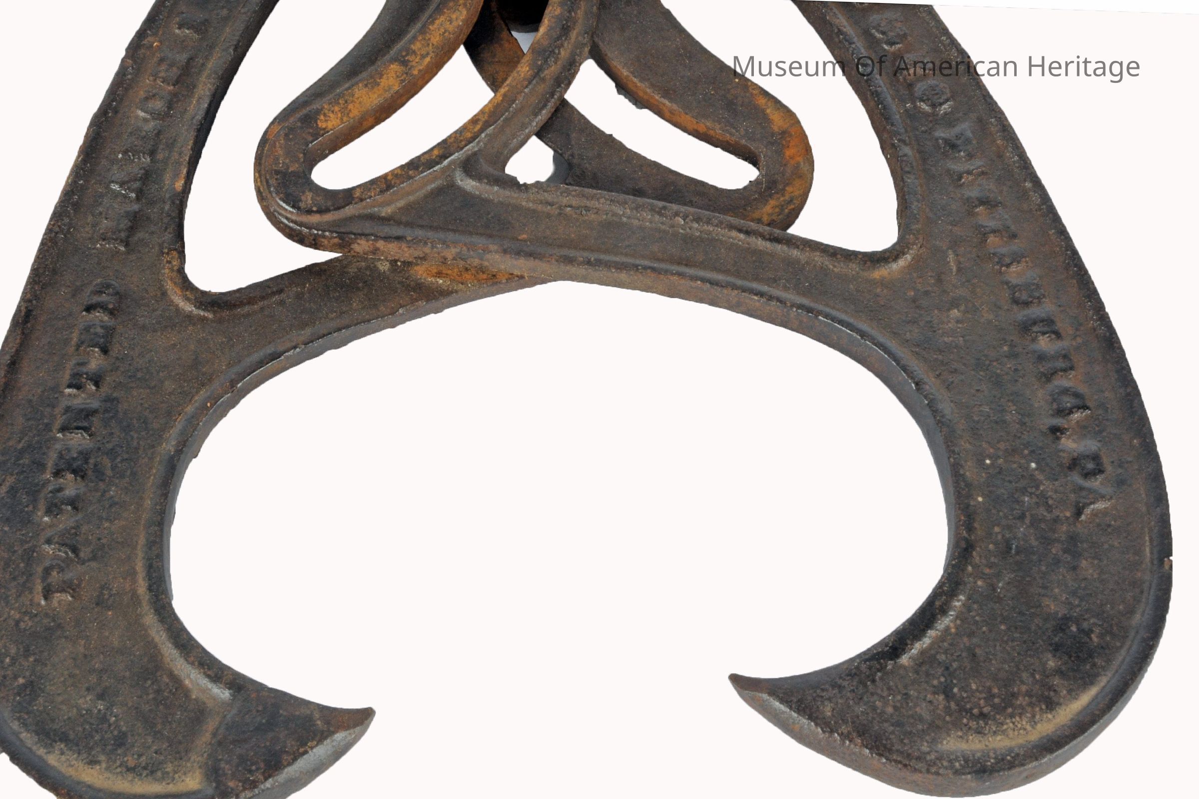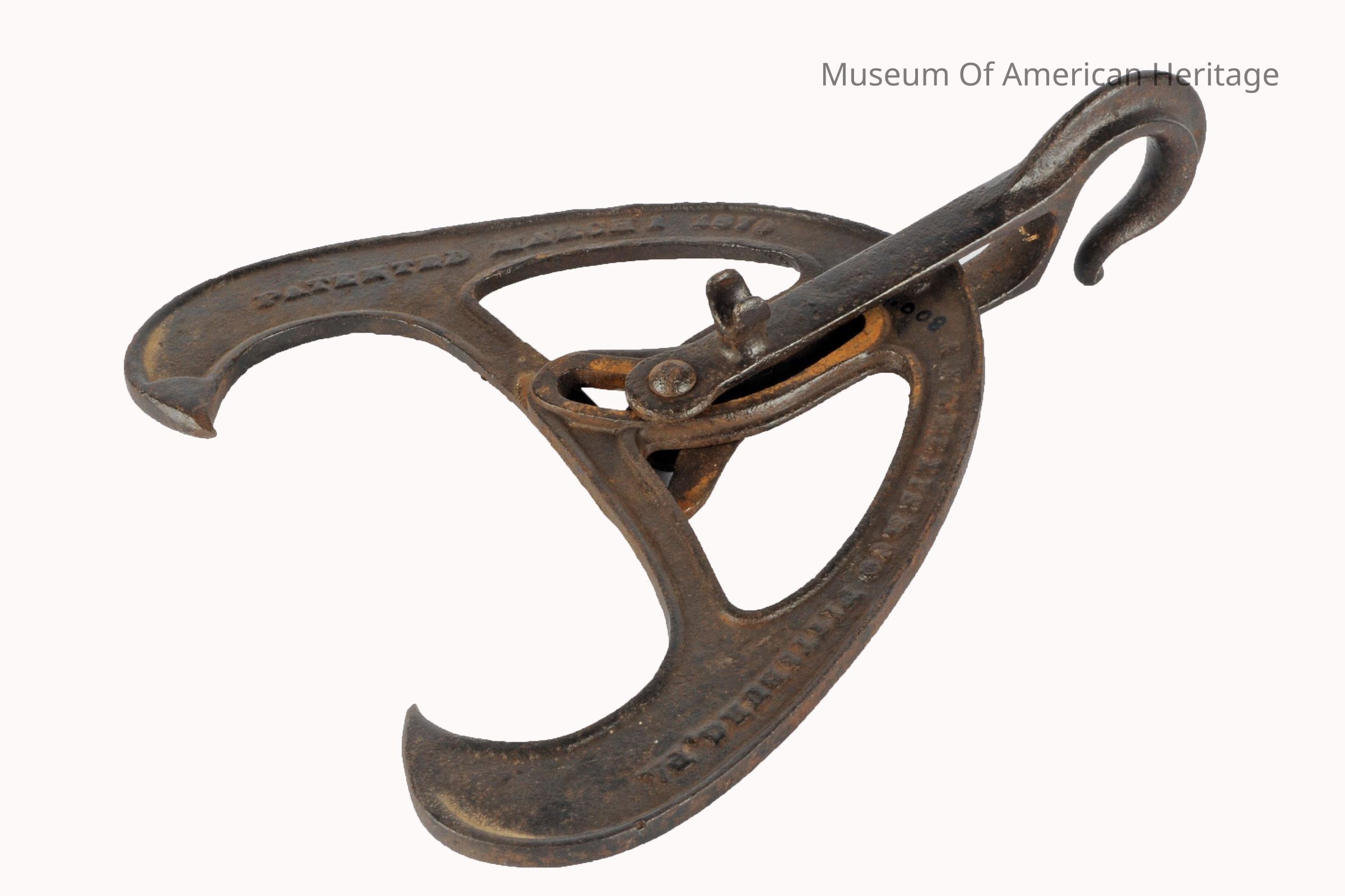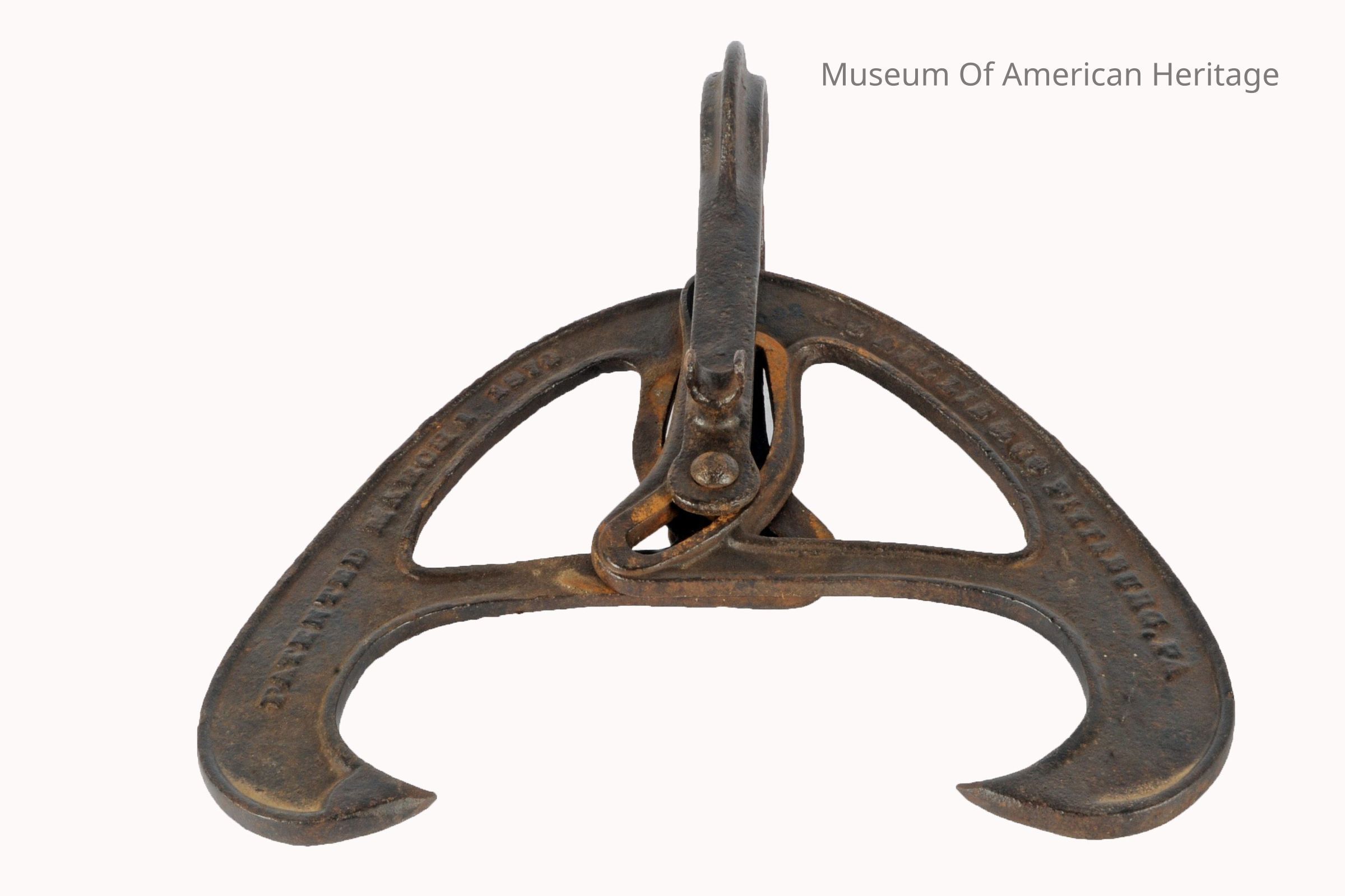 Patented March 1, 1870, used to dig into bar rafters for lifting from hook.