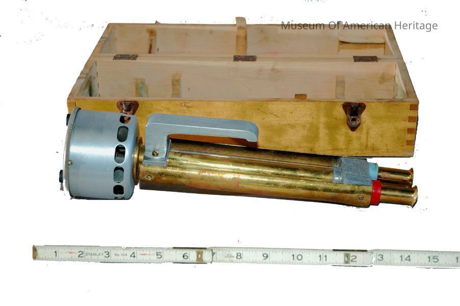 Wet and dry thermometer, spring driven motor.