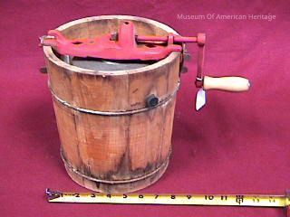 Wood tub, steel container insert, about 1/2 gallon capacity, hand operated.