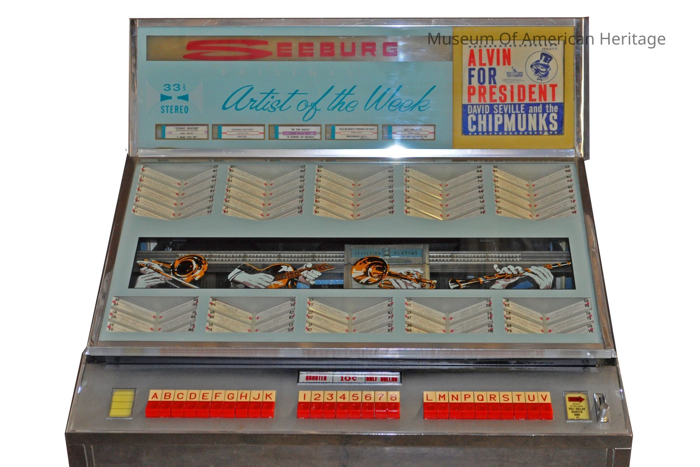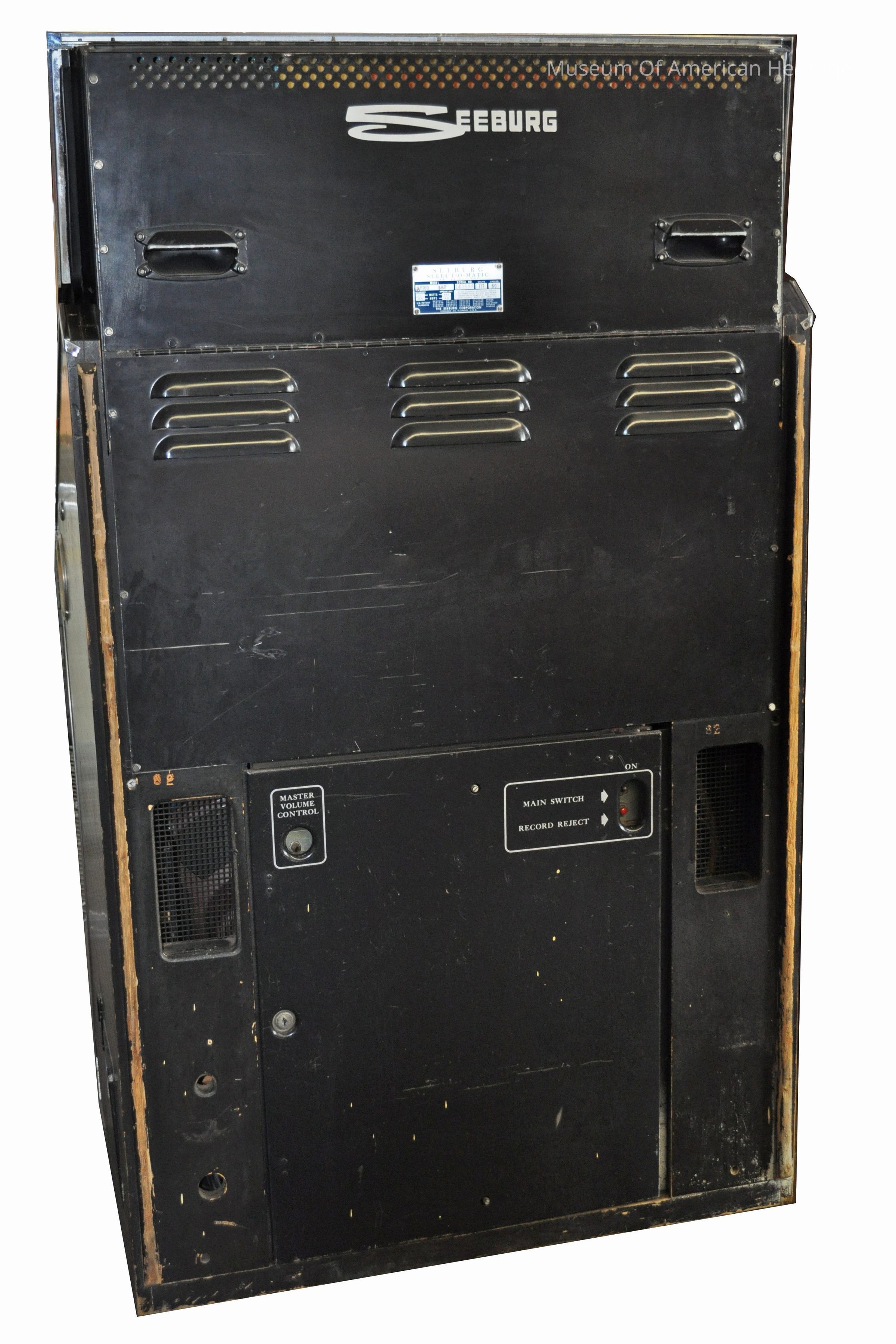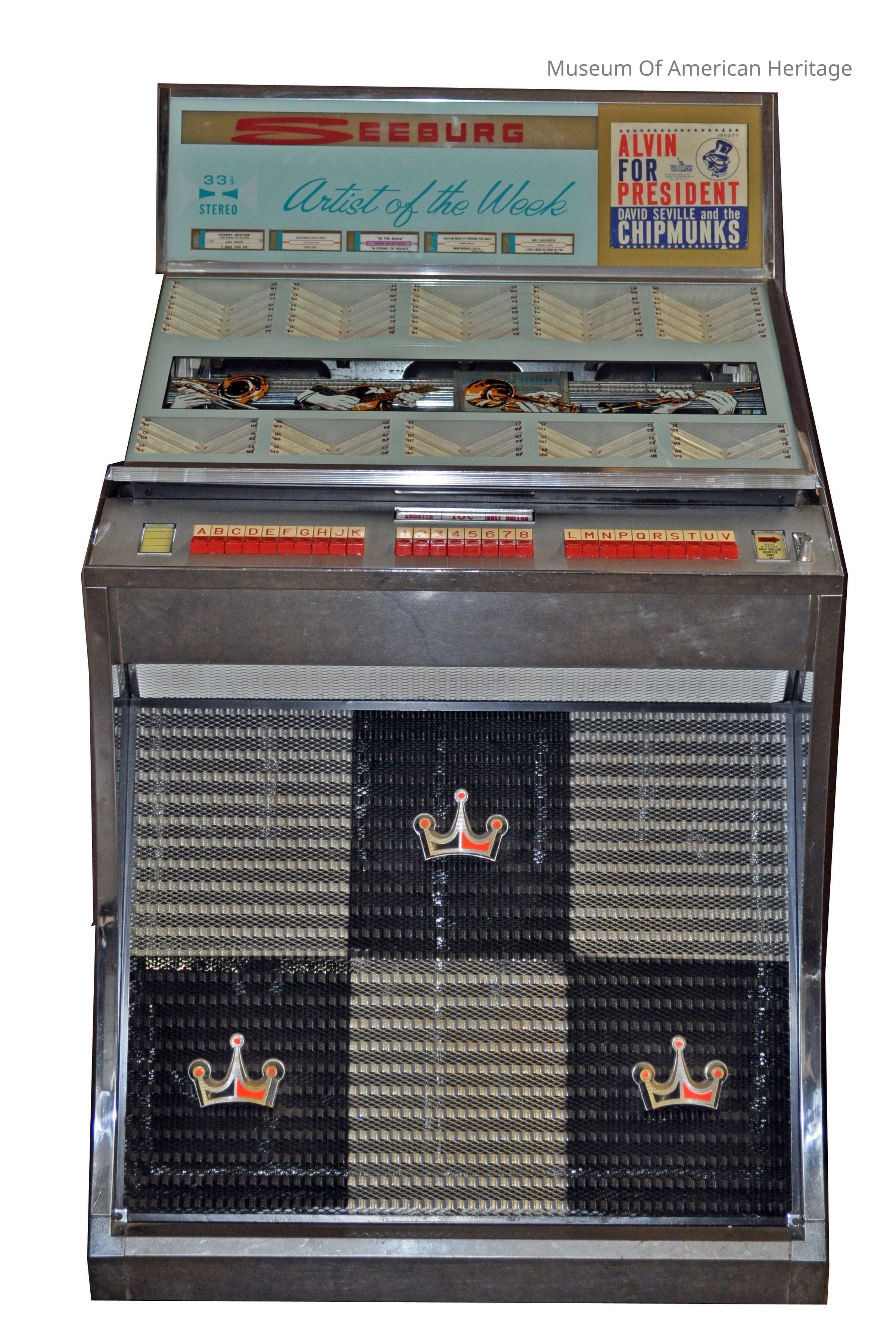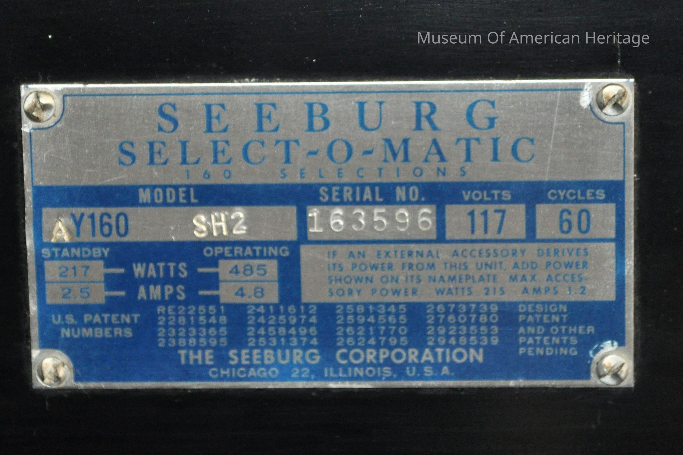 Plays up to 80 - 45 rpm records, alpha and numerical buttons to select record. Was the last Seeburg jukebox with a visible record selector mechanism.