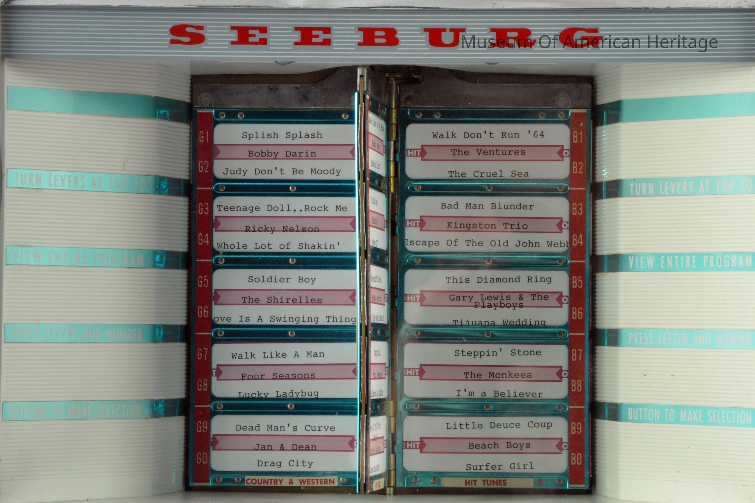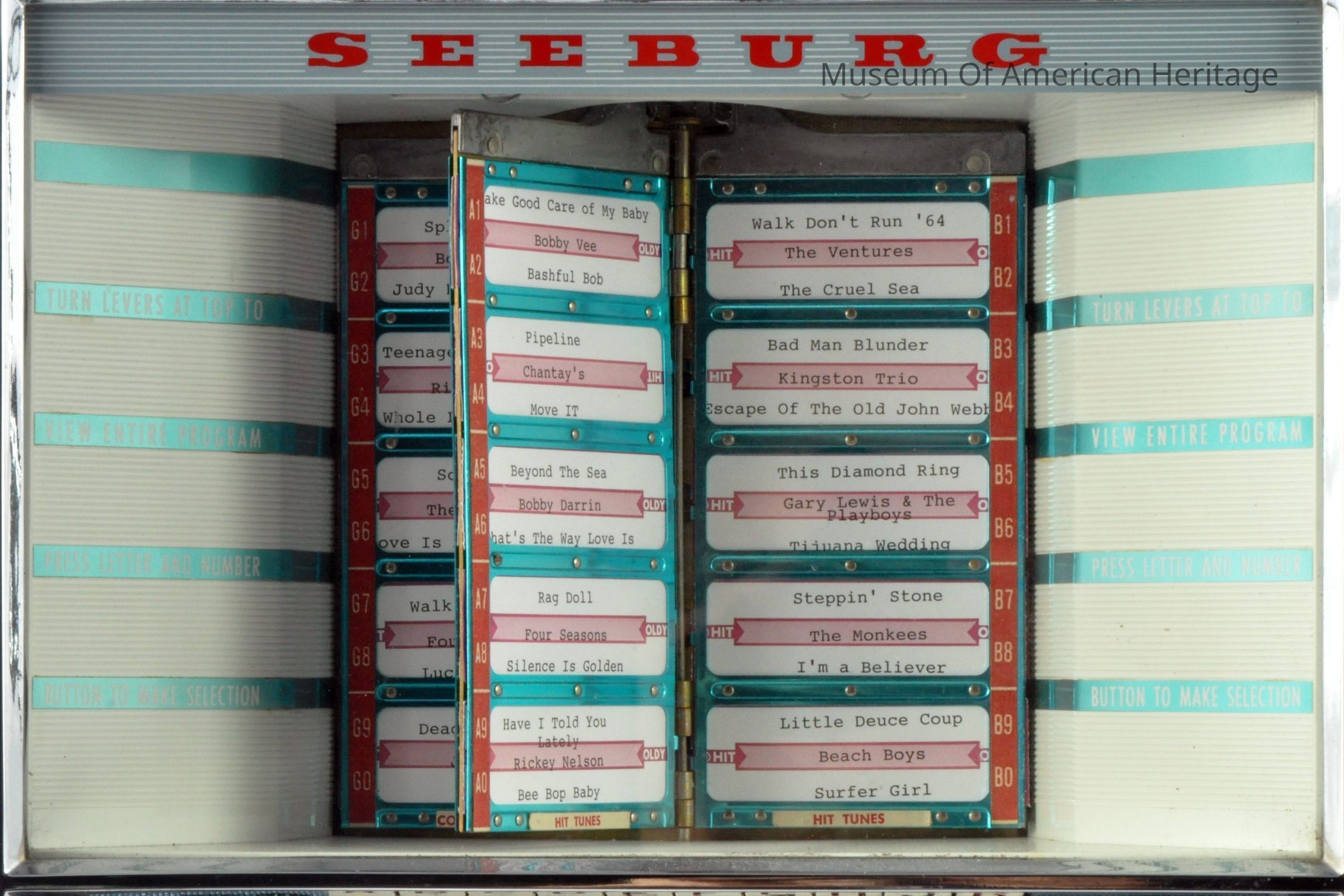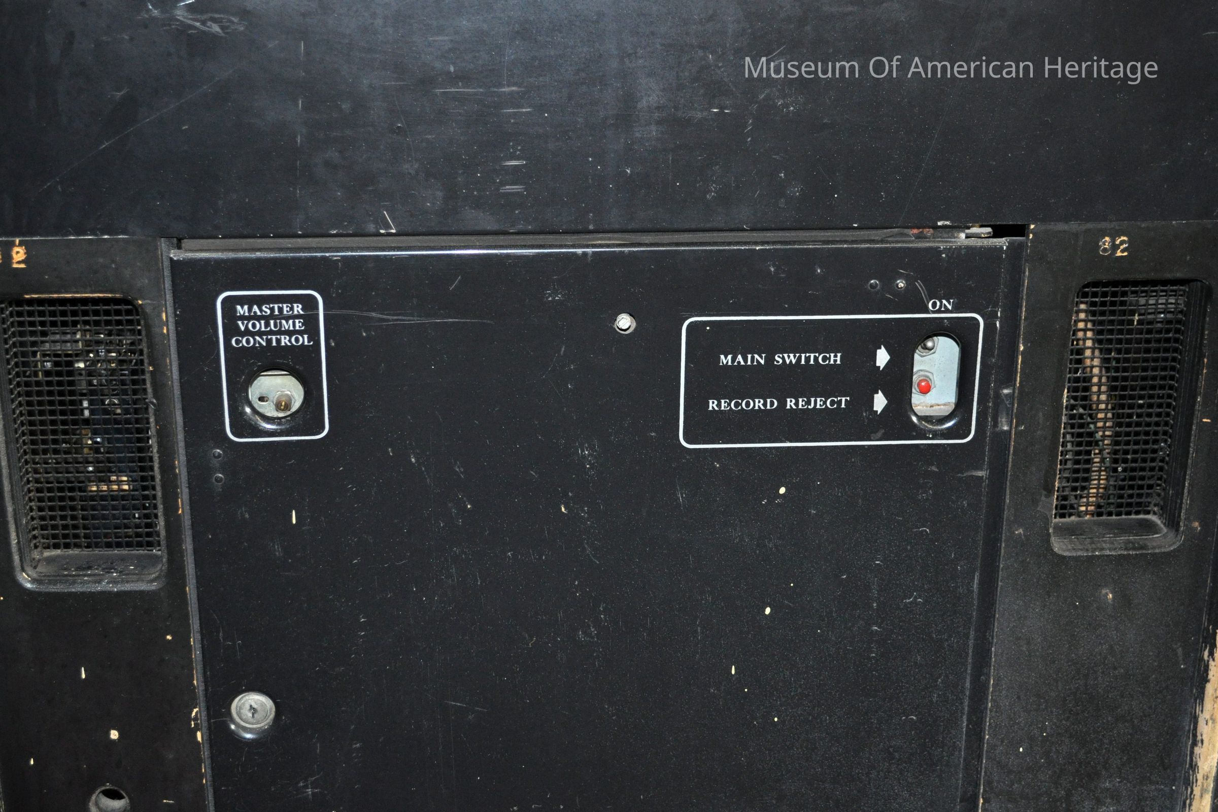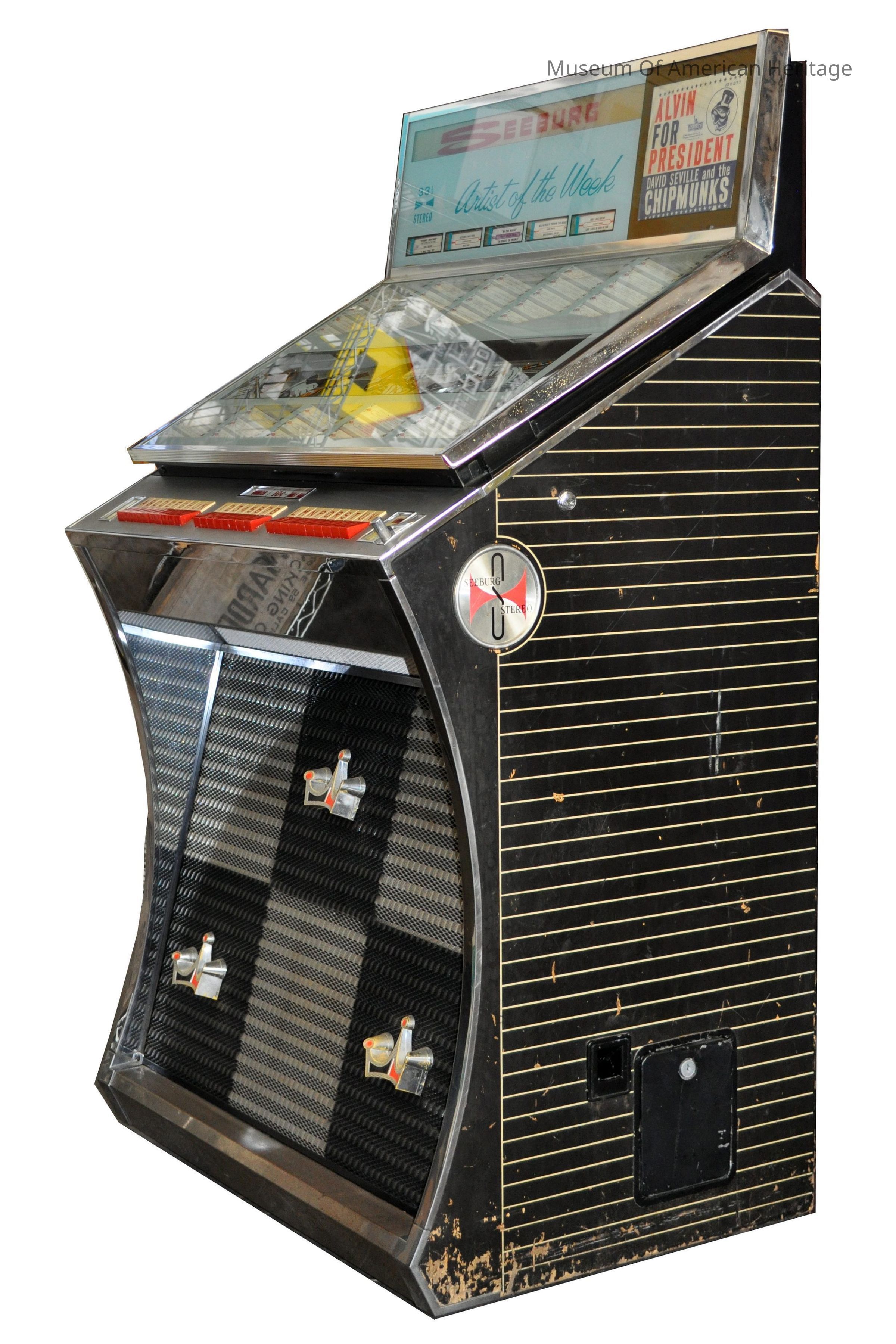 Plays up to 80 - 45 rpm records, alpha and numerical buttons to select record. Was the last Seeburg jukebox with a visible record selector mechanism.