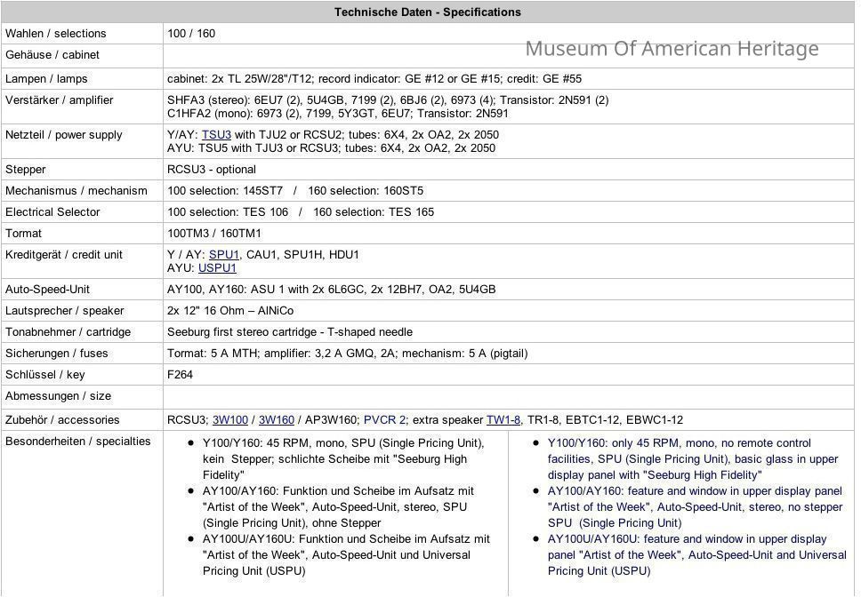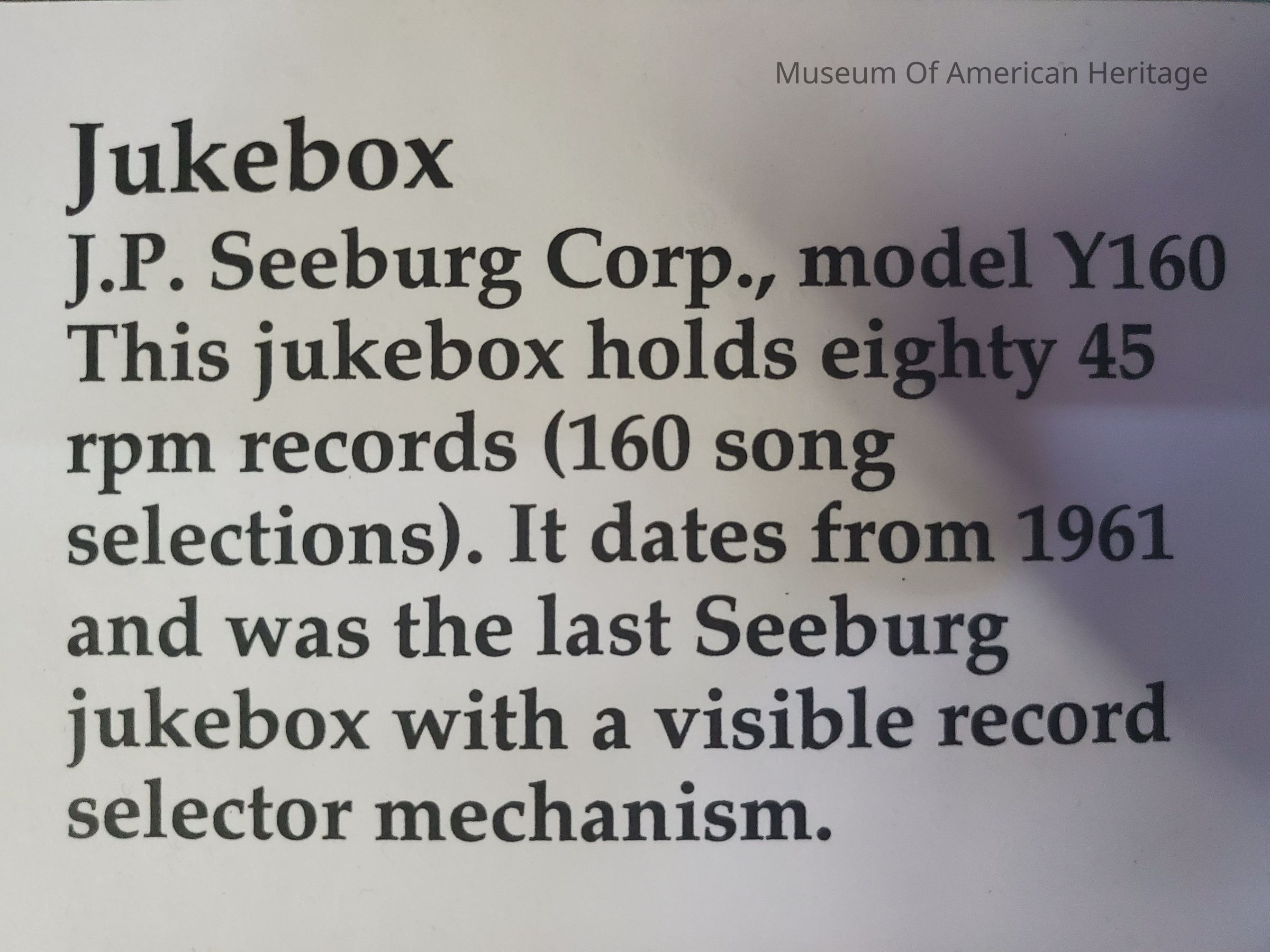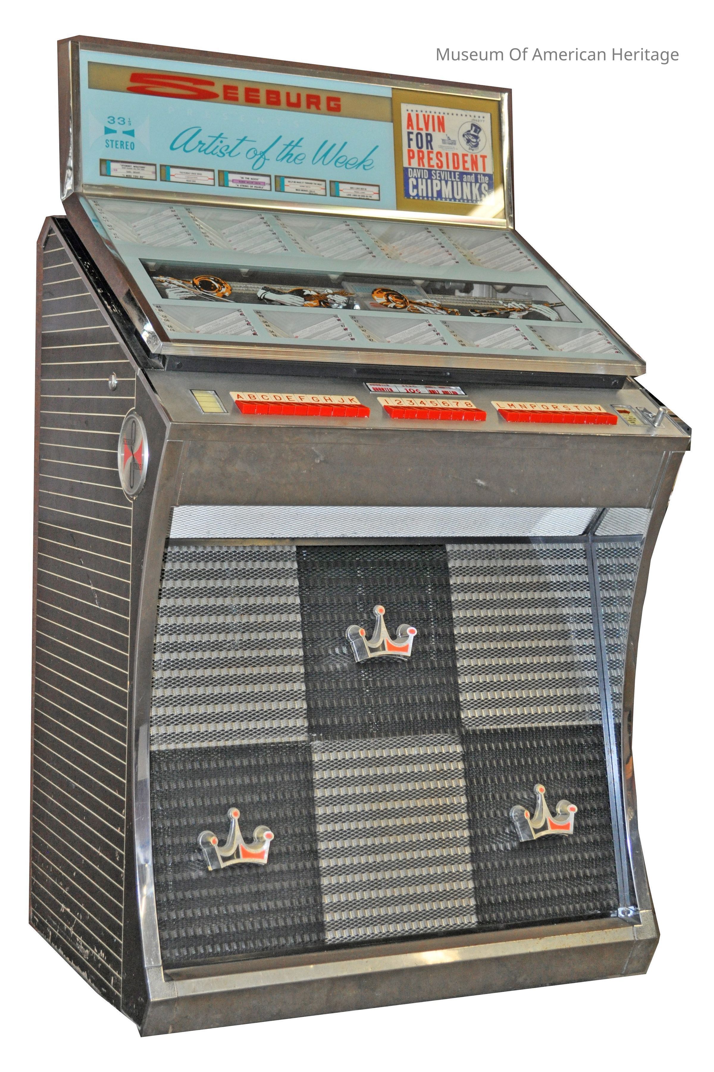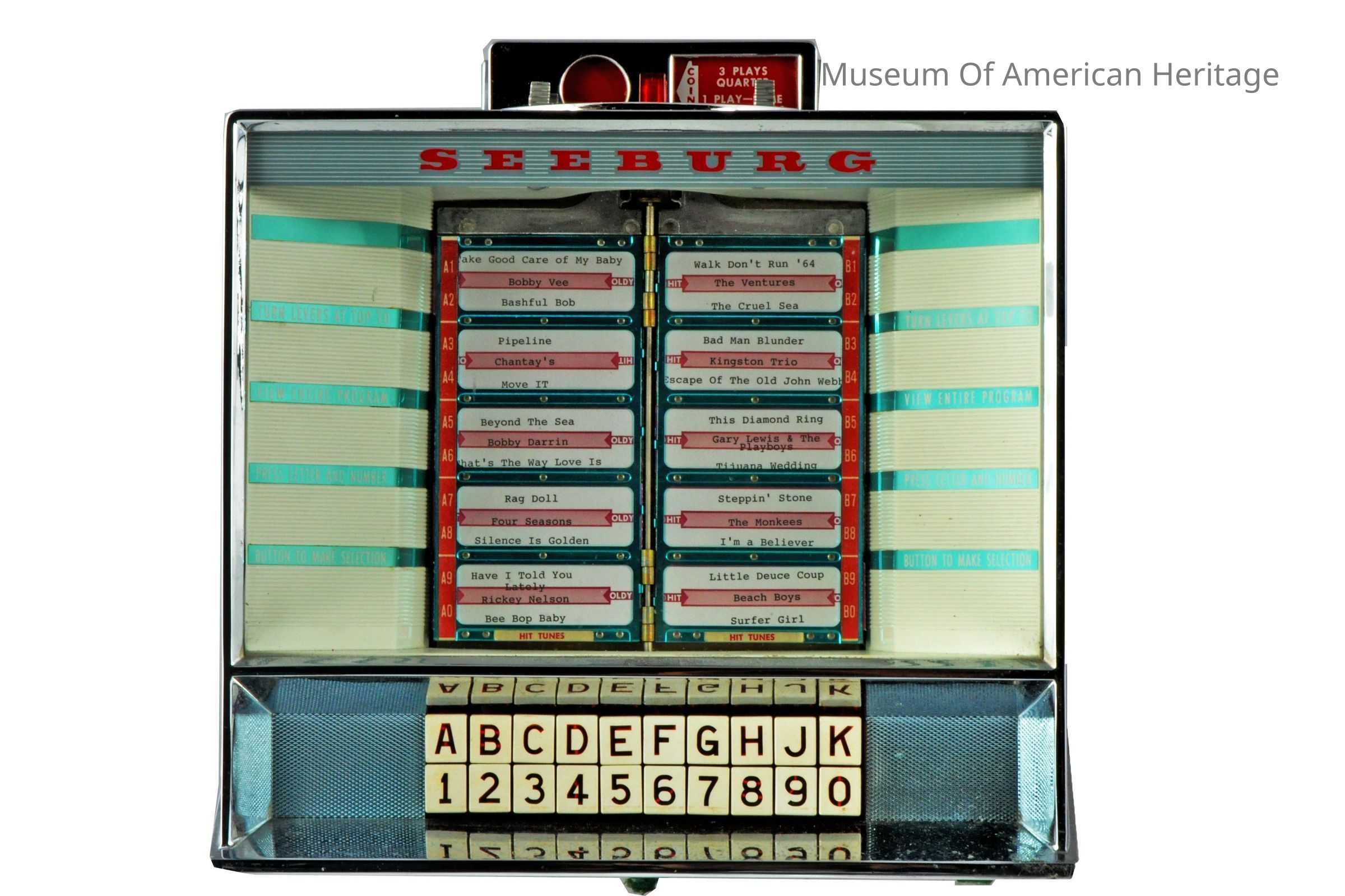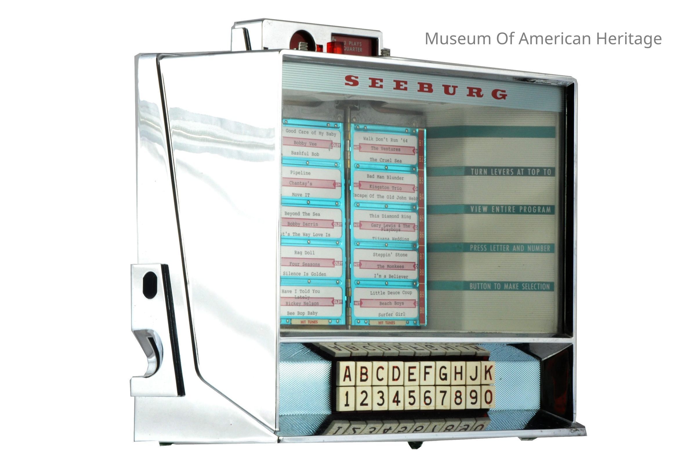 Plays up to 80 - 45 rpm records, alpha and numerical buttons to select record. Was the last Seeburg jukebox with a visible record selector mechanism.