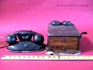 No dial, separate ringer box with crank, ringer box wood.