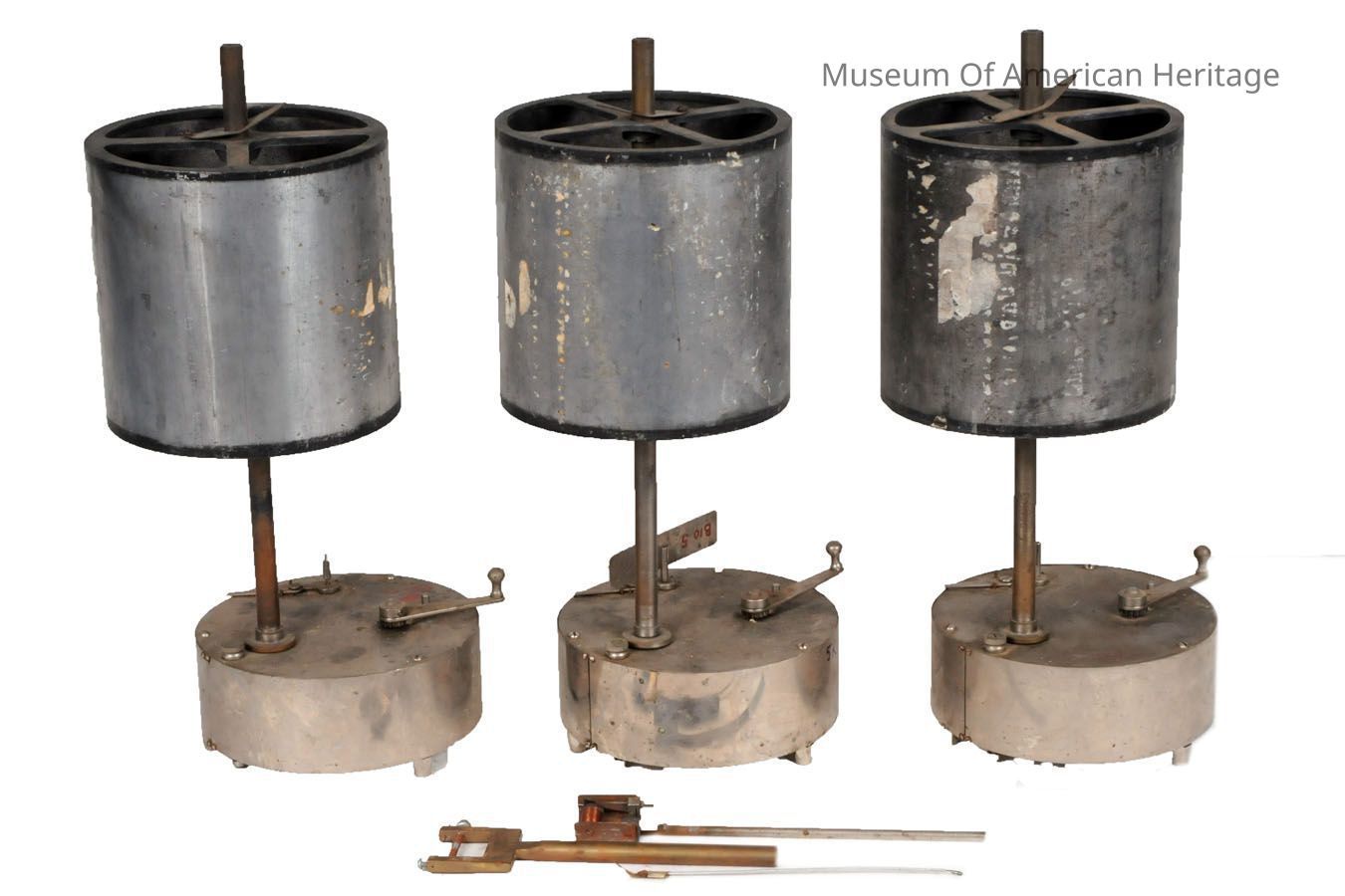 Wind up, and various sized wind vanes are used to control the recording speed.