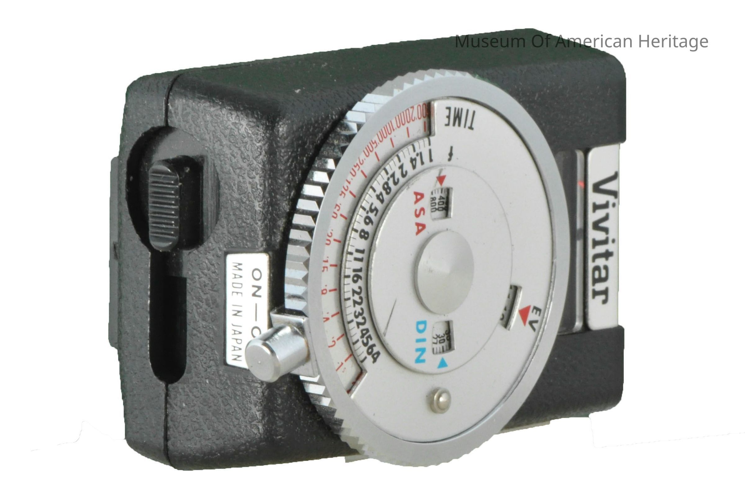 Mounts on camera, ASA speeds 9 to 6400, EV -1 t0-24, CdS photocell, uses PX675 mercury cell, black leather case.
