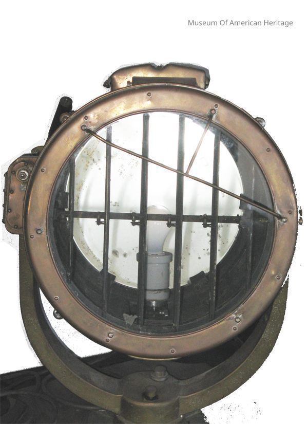 Label Says: Maritime Daylight Signaling Lamp 30cm, can be used as a searchlight. Type S-M-S-30 JIS F8455, 100v 1000w, Total weight 38kg, pat. no. 392242, mfg. Feb. 1965/Showa 40, SHONAN CO., LTD. Tokyo.