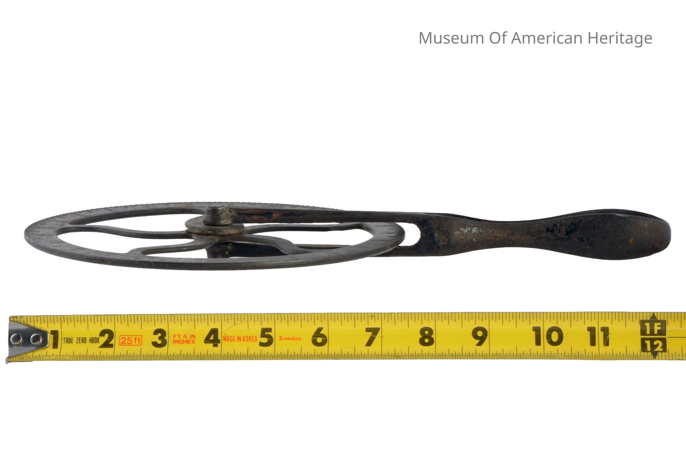 Handle 9 long, calibration on wheel, some black paint residue.