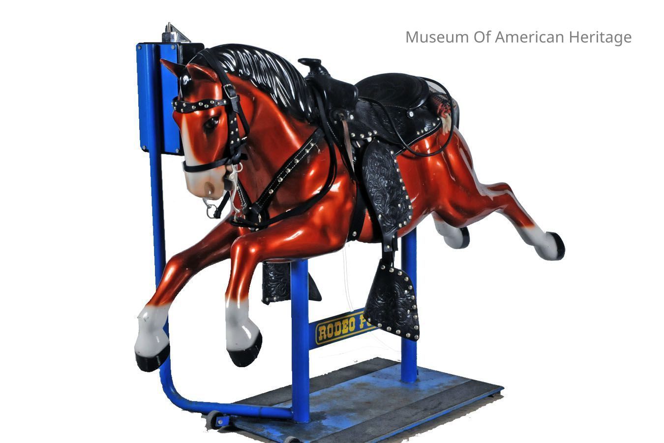 Body of horse is fiberglass. Has GE motor, SKF ball bearings, National slug rejector, Eberhardt-Denver drive mechanism.