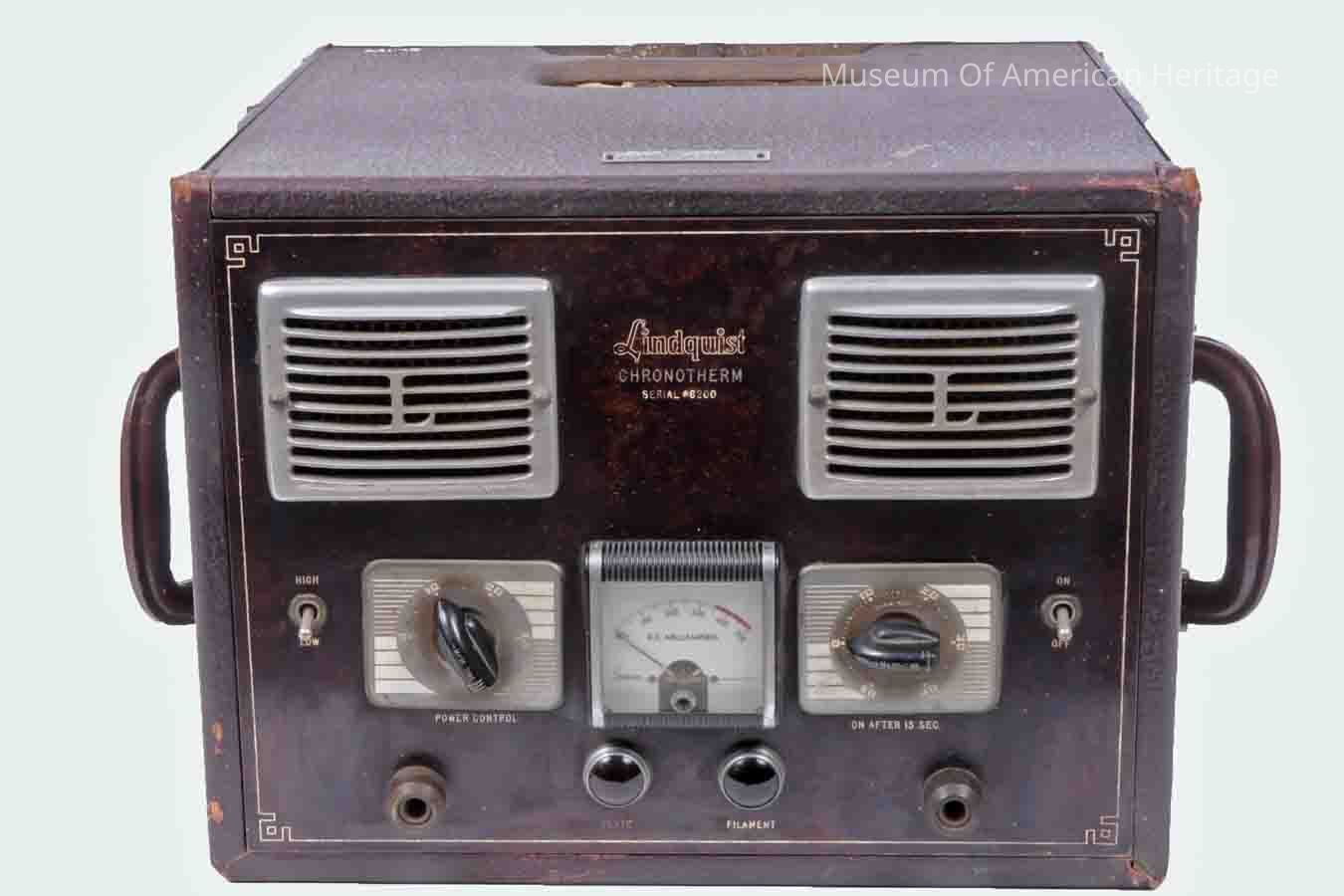 Diathermy is the use of electrical or sound waves to generate heat in the body as a treatment for pain and tension. This Chronotherm uses electricity to generate heat.