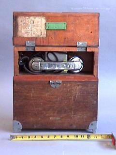 Cast aluminum feet (corners), natural wood case, wing nuts on top designating line one and line two.