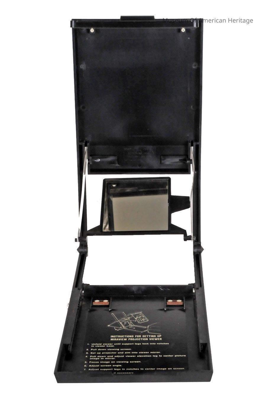 Folds out to allow a slide projector to display on a small screen.