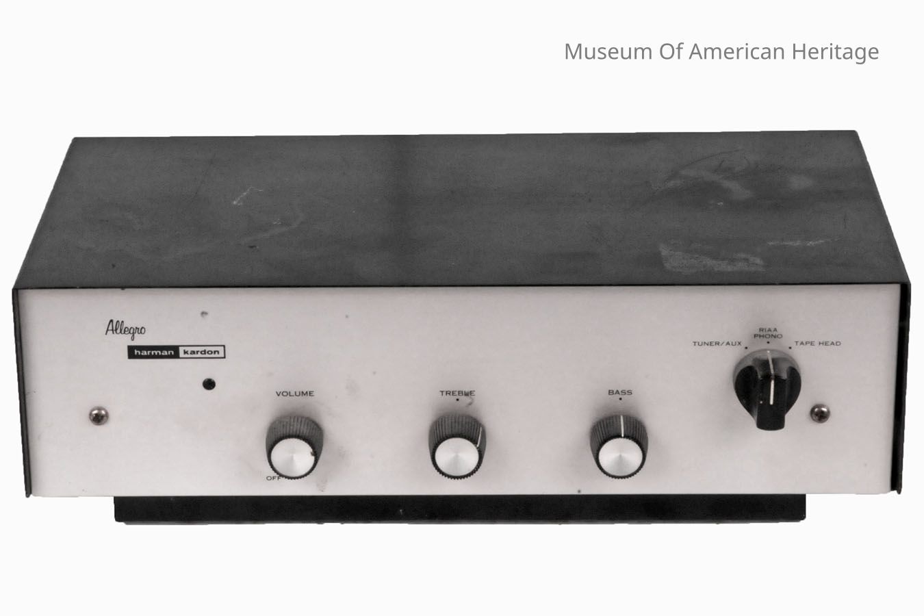 Knobs to adjust the Volume, Treble, and Bass.